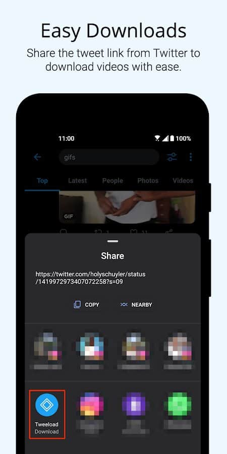 Twitter'dan belirli video ve GIF dosyalarını indirmek için kendi hesabınıza erişim sağlamanız gerekmiyor, sadece indirmek istediğiniz dosyanın bulunduğu tweet'i açmanız, bağlantıyı kopyalamanız veya Paylaş butonuna tıklamanız yeterli, ardından bu uygulamayı kullanabilirsiniz. Orijinal Twitter'da video dosyalarını veya GIF formatındaki animasyonları indirme seçeneği bulunmadığından, içindeki tüm özellikler kesinlikle işinize yarayacaktır. Paylaşma yöntemiyle indirme işlemine başlamak için uygulama listesinden Tweetleri İndir seçeneğini belirleyin ve ardından hangi yöntemi daha sık kullanacağınıza kendiniz karar verin.