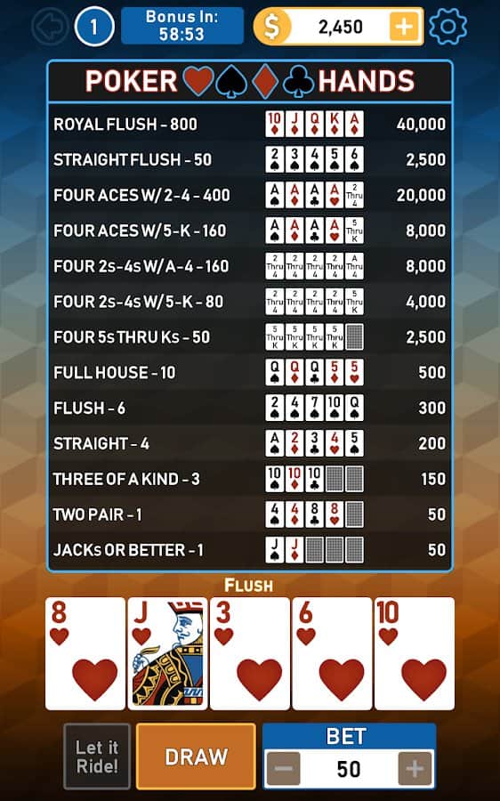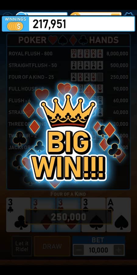 Video Poker Çoklu Bonus - "Ücretsiz Oyun! Tam Ödeme!" - bu, şansınızı deneyeceğiniz ve kesinlikle dünyanın ünlü bir oyuncusu olarak en büyük bonusu alacağınız eğlenceli bir uygulamadır. Artık gerçek paralarınızı kaybetmeden poker oynayabilirsiniz.