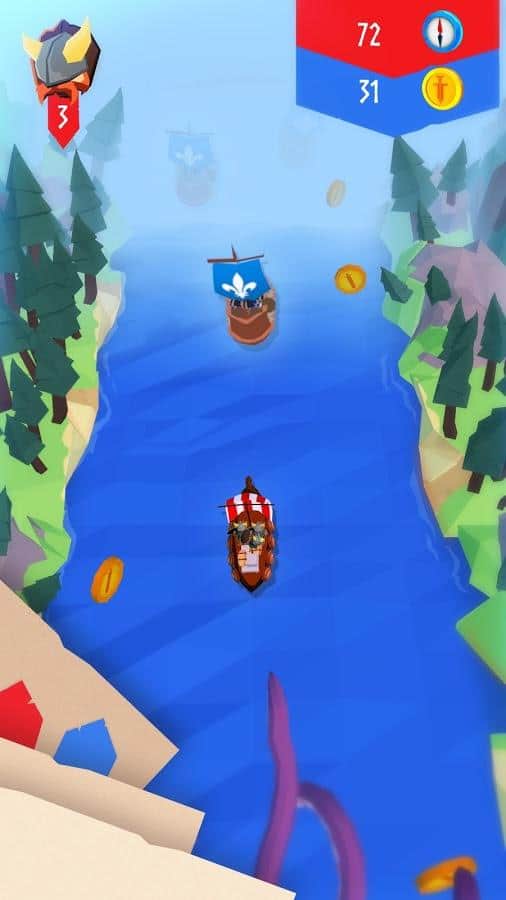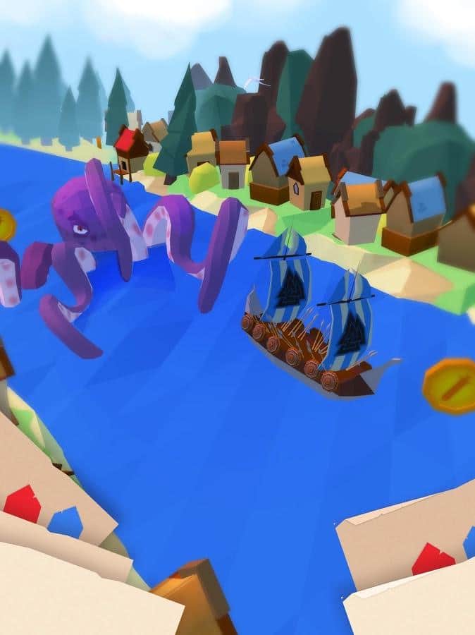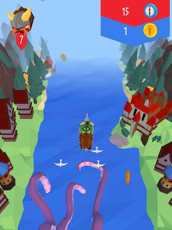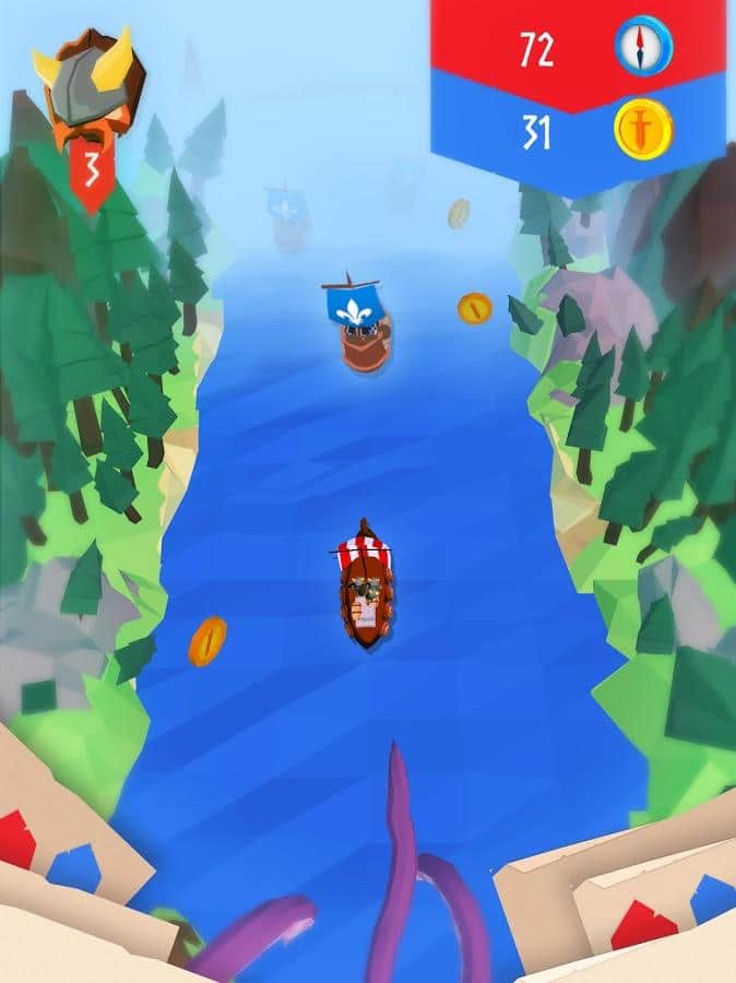 Viking Yelkeni – Android için bir oyun, burada cesur Vikinglere acımasız topraklarda seyahat etmelerine yardımcı olacaksınız. Geminizi öne doğru götürün ve yelkenlerinizi olabildiğince güçlü bir şekilde şişirin, böylece tüm engelleri daha hızlı aşabilir ve sizi takip eden dev ahtapotun elinden kaçabilirsiniz. Bu heyecan verici yolculuk sırasında karşınıza birçok engel çıkacak ve bunları aşmak için oldukça fazla çaba harcamanız ve maksimum hızı elde etmek için uğraşmanız gerekecek. Bu oyunda mümkün olduğunca uzun süre dayanın ve yol boyunca geminiz için tüm bonusları ve güçlendirmeleri toplayın. Vikinglere evlerine güvenli bir yol açmalarında yardımcı olun.