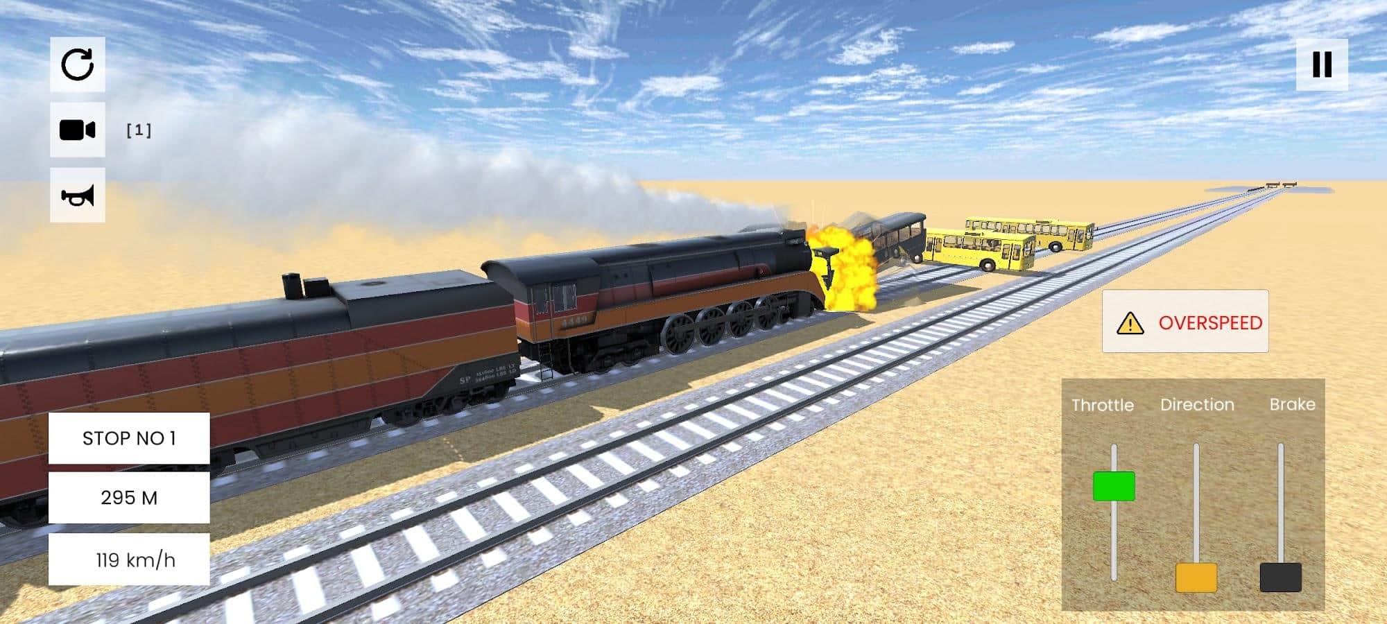 Vintage Steam Train Sim Pro - eski lokomotiflerin romantizmini ve gücünü yaşamanız için eşsiz bir fırsat sunuyor. Gerçekçi bir şekilde yeniden tasarlanmış buharlı lokomotifleri kullanarak, tarihi rotalar ve güzel manzaralar eşliğinde unutulmaz bir yolculuğa çıkın. Her kilometrede buharın gücü ve geçmişin ruhu sizi bekliyor! Oyunda üç benzersiz mod sizi bekliyor! Sonsuz yolların tadını çıkarabilir, her seferinde yeni bir rota keşfedebilir veya tarihi rotalarda yolculuk yaparak her durakta yolcu alabilirsiniz. Üçüncü modda ise kontrollü çarpışmalar düzenleyebilir ve nefes kesici test kaza anlarını gözlemleyebilirsiniz!