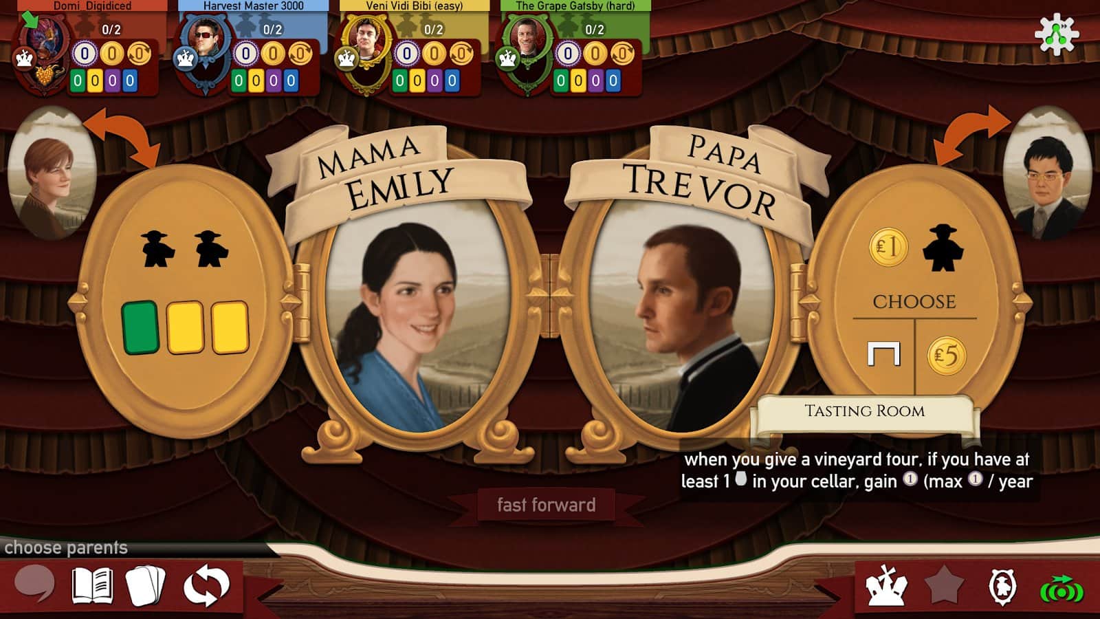 Toskana'da, miras aldığınız bakımsız bir bağ ile eski bir köyde bulunuyorsunuz. Birkaç tarlanız, eski bir şarap presiniz, küçük bir mahzeniniz, 3 işçiniz var... ve şarapçılığınızı İtalya'nın en iyisi yapmak için bir hayaliniz var. Göreviniz işçileri dağıtmak, misafirleri kabul etmek ve yıl boyunca görevleri yerine getirmektir. Her mevsim bağda diğerinden farklıdır. Yaz ve kış aylarında işçilerin görevleri tamamen farklıdır. Burada rekabet serttir ve çoğu zaman bir görevi üstlenen ilk işçi diğerlerine göre avantaj elde eder. İşçileri kullanarak ve misafirleri kabul ederek binalar inşa edebilir, üzüm dikebilir ve siparişleri yerine getirerek amacınıza doğru ilerleyebilirsiniz - şarapçılığınızı ülkedeki en başarılı hale getirmek.