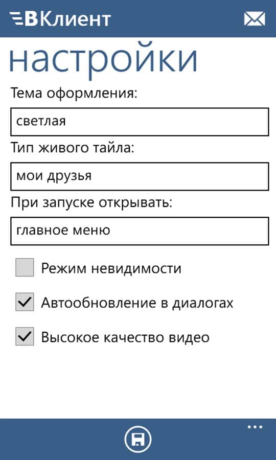 VKli̇ent - Windows Phone için bir uygulama olup, siteye tüm fonksiyonlarına kolay ve basit erişim sağlar. Arkadaşlarınızla sohbet edin, müzik dinleyin, video izleyin, yeni arkadaşlar edinin, haberleri okuyun ve daha fazlası. Program, internet trafiğinizi tasarruf etmenizi sağlar, programda 'gizli' modu bulunmaktadır.