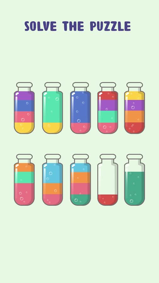 Su Sıralama Bulmacası - beyninizi dinlendirin ve maksimum verimlilik için sürekli olarak onu eğitin. Farklı renklerdeki suyu aynı paletli şişelere dökerek bulmaca oyunundaki tüm seviyeleri geçin. Başlangıçta sıvı için az miktarda yer veriliyor, ancak her seferinde daha fazla yer açılıyor, ancak kazanma şansı zorlaşıyor. Hareketlerinizi dikkatlice düşünmeyi unutmayın, bu doğru sonuca ulaşmanızı sağlayacaktır. En büyük avantajlardan biri, oyun içinde bir zamanlayıcı ve ceza olmadığı için acele etmenize gerek olmamasıdır.