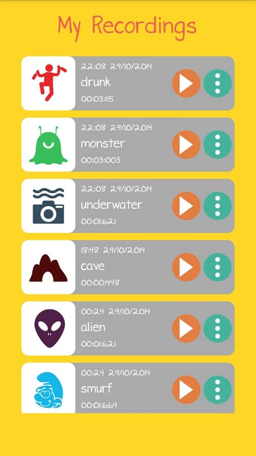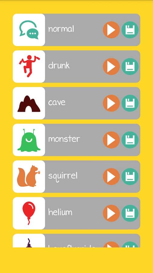 Ses Değiştirici - Bu oldukça basit ve aynı zamanda eğlenceli uygulama ile sesinizi değiştirebilir ve tüm bunları ses dosyalarına kaydedebilirsiniz. Bu uygulamanın amacı sesinizi kaydetmek ve bununla birlikte çeşitli efektler eklemektir, bu da sesinizin tamamen farklı bir şekilde duyulmasına neden olur. Bu uygulamanın nasıl çalıştığını anlamak çok kolaydır ve hiçbir zorluk çıkarmaz. Kendinizi bir canavar, robot ve hatta bir sincap olarak duyun.