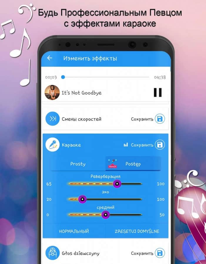 Ses Değiştirici - ses efektleri - Kendi şarkınızı kullanarak müziği kaliteli bir şekilde kaydedin! Sesin daha iyi duyulması için karaoke için üç parametreyi deneyin: yankı, yankılanma, orta. Seslerin hızını ve tonunu değiştirin, isterseniz deney yaparak kaydedilen sesi karşı cinsin sesiyle değiştirin, robot sesi oluşturun ve ek efektler ekleyin (ton, tempo, ses seviyesi, düşük, orta, yüksek frekanslar). Birçok ayarı düzenledikten sonra şarkıyı kolayca indirebilir, alarm veya başka bir zil sesi olarak ayarlayabilirsiniz.