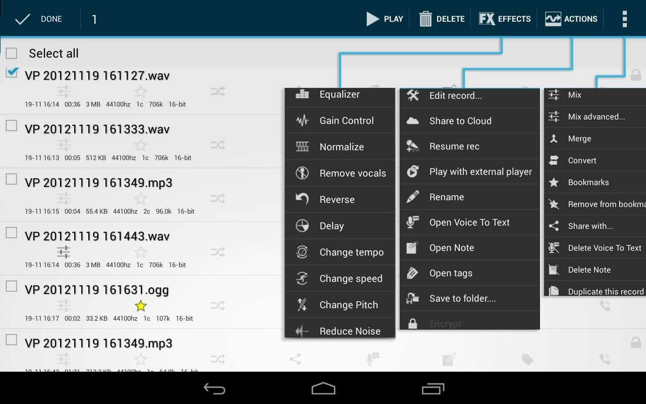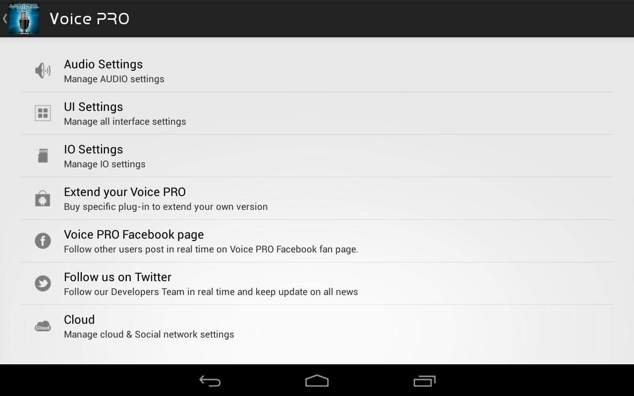 Voice PRO, Android için sadece bir ses kaydedici değildir; bu programı indirerek tüm olanaklarını, kayıtlarınıza uygulamak için birçok işlev ve efektleri göreceksiniz. Kısacası, istediğiniz her şeyi (düzenlemek, ayarlamak, kesmek, başka bir arka plan eklemek, parazitleri ve gürültüleri ortadan kaldırmak, ses efektleri eklemek, ses seviyesini değiştirmek, tempoyu değiştirmek, farklı boyut ve kalitedeki kayıtları birleştirmek veya karıştırmak, ses kayıtlarını 50'den fazla dilde metne dönüştürmek ve boyut kısıtlaması olmaksızın!)