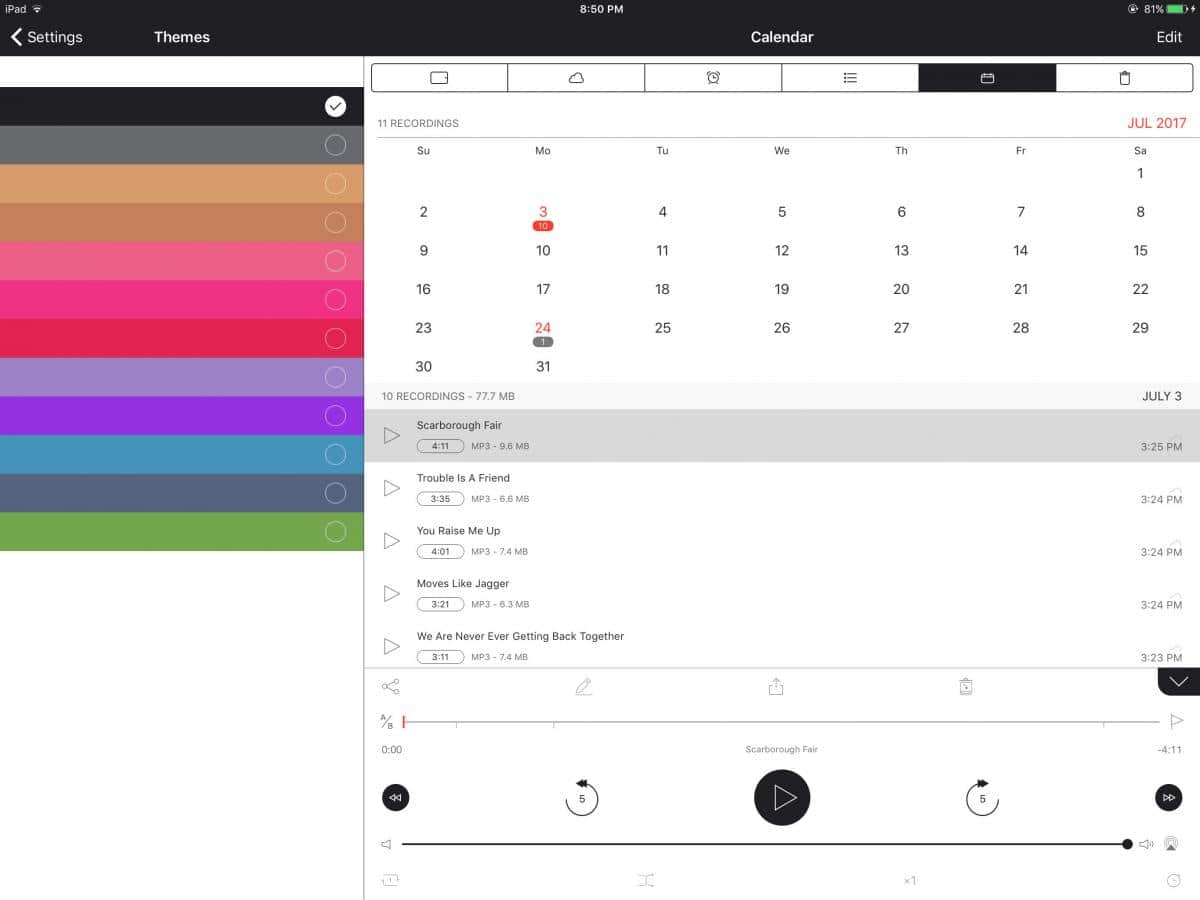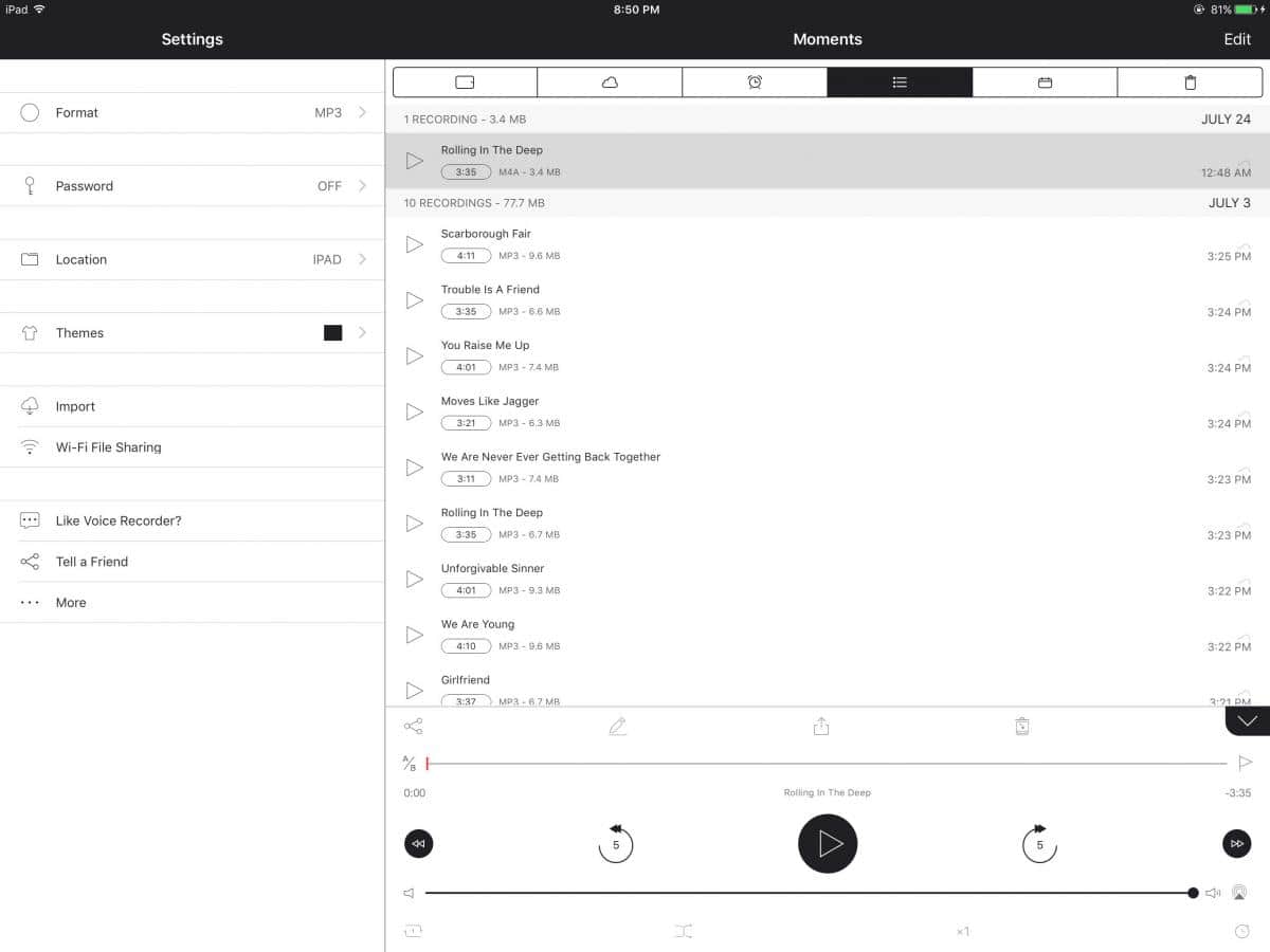 Ses Kaydedici - Bu uygulama, ses ve vokal kaydetmek için en iyi uygulamalardan biri olarak birçok kullanıcı tarafından kabul edilmiştir. En önemli özelliği, sadeliğine rağmen bir dizi farklı işlevi barındırmasıdır. Ses seviyesini ayarlayabilir, birden fazla ses kaynağını birleştirebilir ve elde ettiğiniz tüm sonuçları bulut depolama aracılığıyla hızlı bir şekilde paylaşabilirsiniz. Ya da ses dosyalarını doğrudan bulut depolamaya kaydedebilirsiniz, böylece ihtiyaç duyduğunuz ses dosyalarını asla kaybetmezsiniz.