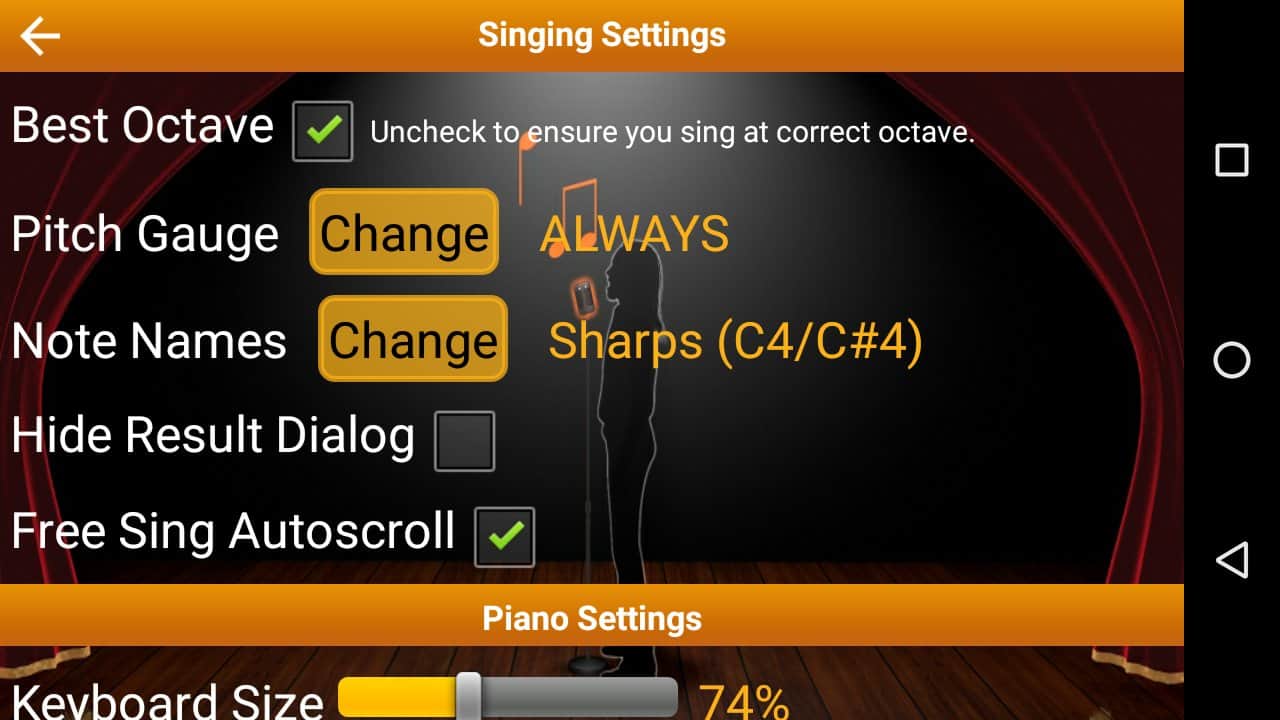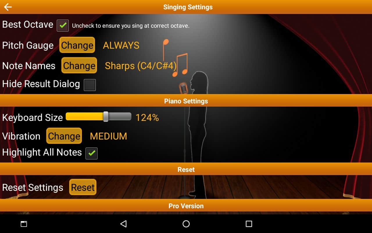 Ses Eğitimi Pro - Ses eğitimi için benzersiz bir uygulama. Birçok veri girebilir ve istediğiniz nota ile ulaşma yeteneğinizi test edebilirsiniz. Bu, şarkı söyleyeceğiniz veya müzik besteleyeceğiniz bir müzik uygulaması değil, tam olarak ses eğitimi uygulamasıdır. Uygulama sesinizi tanıyacak ve hangi notayı çıkarıyorsanız ekranınızda gösterecektir. Böylece, farklı görevler belirleyerek ve her seferinde onları zorlaştırarak şarkı söylemek için sesinizi eğitebilirsiniz.