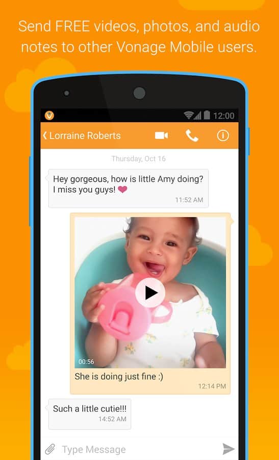 Vonage Mobile® Çağrı Video Metni - Çok mu sohbet etmeyi seviyorsunuz? Yoksa büyük bir şirketin çalışanı mısınız ve telefon rehberiniz mi patlamak üzere? O zaman bu basit uygulama tam size göre. Bu oldukça basit mesajlaşma uygulaması, zor zamanda size yardımcı olacak, çünkü içinde ihtiyaç duyduğunuz her şey var; mesajlaşma imkanı, sim kart kullanmadan arama yapma imkanı ve daha fazlası. Her zaman arkadaşlarınız ve sevdiklerinizle iletişimde kalın.