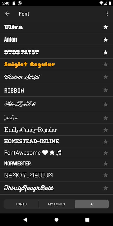 Vont - Videolarda Metin uygulaması, 200'den fazla farklı yazı tipini kullanma fırsatı sunar. Ayrıca, metinlerinize kişilik katmak için kendi yazı tiplerinizi de yükleyebilirsiniz. Metin boyutu ve rengi tercihlerinize göre kolayca değiştirilebilir. Ayrıca, metin için gölge ayarlayabilir, döndürme açısını değiştirebilir ve kontur rengini ve genişliğini ayarlayabilirsiniz. Daha fazla efekt oluşturmak için, metin arka plan rengi de değiştirilebilir. Uygulamamız, harfler arasındaki boşluk ve satır aralığını ayarlamanıza olanak tanır, böylece metni mükemmel bir şekilde görünümünü elde edebilirsiniz.