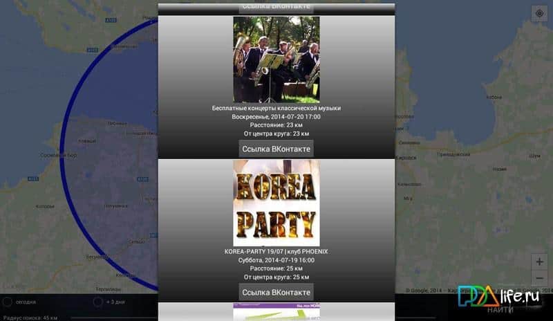 VKontakte Etrafındaki Buluşmalar – dünyanın dört bir yanında VKontakte'de oluşturulan eğlenceleri ve buluşmaları bulmayı amaçlayan faydalı bir uygulamadır. Etkinlikleri kaçırmayın, şehrinizde ve daha fazlasında neler olup bittiğinden haberdar olun, etkinliklere katılın. İyi aramalar ve harika zaman geçirmeler dileriz.
