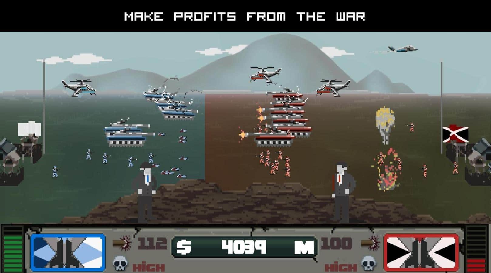 Savaş Ajanı - askeri harekâtlardan kazanç sağlayan spekülatörler hakkında Android için piksel tabanlı bir strateji oyunu. İki süper güç arasında bir savaş patlak vermek üzere ve spekülatörlerin bundan kazanç sağlaması için bir fırsatı var. Siz, askeri harekâtlarla ve savaş sırasında ülkede neler olduğuyla ilgilenmeyen bir askeri spekülatör olacaksınız; tek ilginiz para. Askeri harekâtlar, hükümet, medya ve halk üzerinde etkili olmanızı sağlayacak büyük fırsatlara ve güce sahip olacaksınız. Geniş bir silah ve teknik yelpazesi kullanarak askeri harekâtlara dalın, gerçekçi sesler ve müzikle bu durumu test edin ve başkalarının açgözlülüğünün nereye varabileceğini görün.