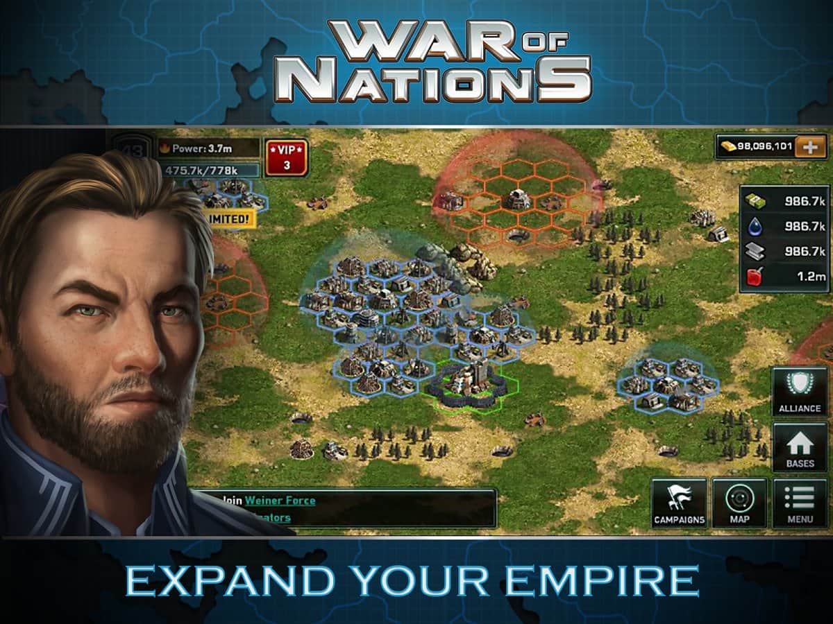 Ulusların Savaşı - kendi yenilmez imparatorluğunuzu kuracağınız ve tüm dünyada güç kazanacağınız çevrimiçi bir stratejidir. Üslerinizi inşa edin, askeri gücünüzü artırın, teknolojinizi modernize edin, askeri gücü güçlendirin, kaynakları toplayın, ittifaklar oluşturun ve diğer oyuncularla saldırıları koordine edin. Epik savaşlara katılın ve size boyun eğmeyen herkesi yenin. Tüm gezegende egemen bir ulus olun!