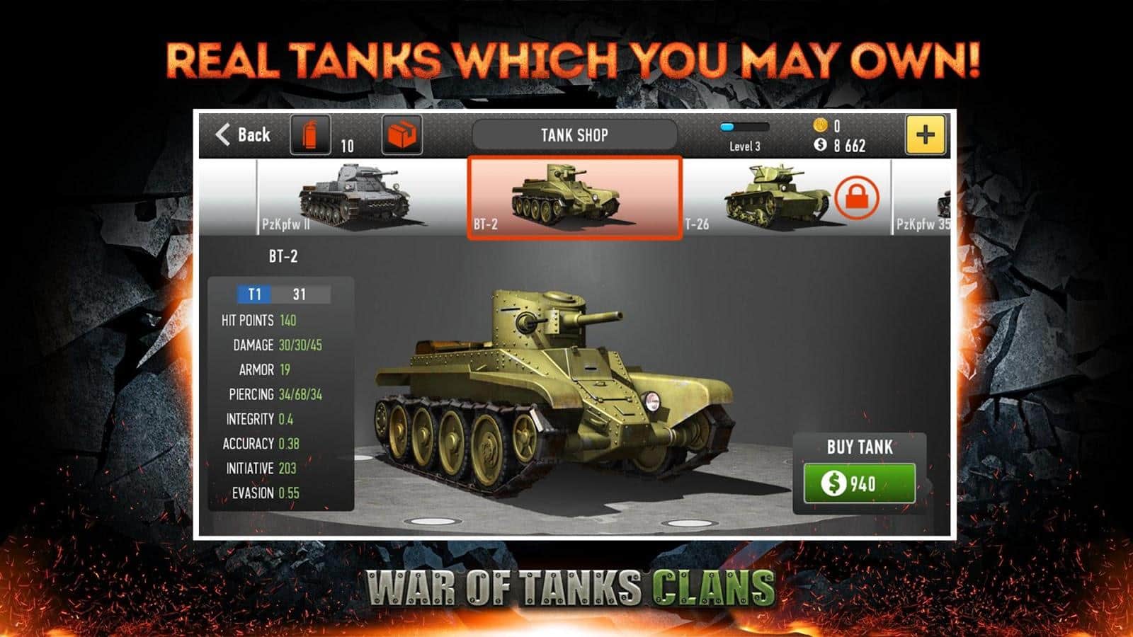 Tank Savaşları: Klanlar - İkinci Dünya Savaşı dönemine ait tank strateji oyunu. Bu oyunda devasa tankların komutasını alacak ve zafer için onlara liderlik edeceksiniz. Sizi, sekiz tanktan oluşan bir grup toplayabileceğiniz çevrimiçi olan da dahil olmak üzere, beş oyun modu bekliyor. Ardışık altı baskına katılın ve bunun karşılığında evrensel tanklar oluşturmanıza yardımcı olacak benzersiz planlar kazanın. Ölümcül savaşlarda savaşın, puan kazanın ve yeni tankları ve efsanevi ağır Churchill'i keşfedin.