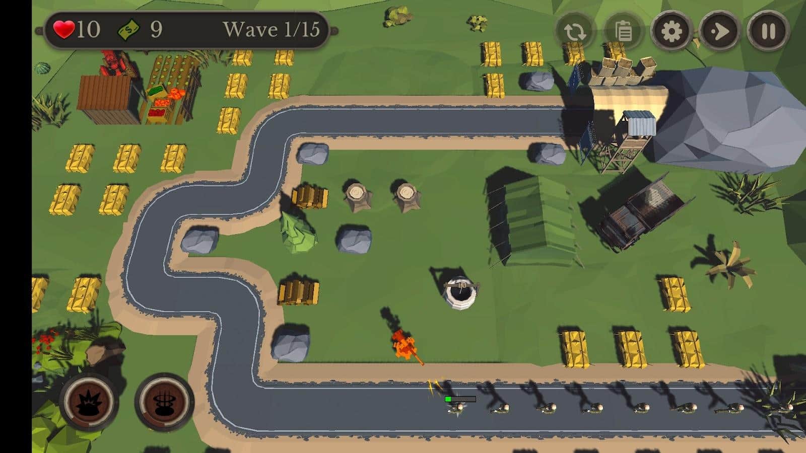 Savaş Stratejisi 3D: Kule Savunması - Sizi İkinci Dünya Savaşı dünyasında, komutan olup topraklarınızın savunmasını yöneteceğiniz heyecan verici bir savaş bekliyor. Farklı kuleler ve savunma yapıları yerleştirmek için taktiksel becerilerinizi ve stratejik düşüncenizi kullanın. Düşman tanklarına ve rakiplerine güçlü anti-tank atışlarıyla meydan okuyun. Top kuleleri ile düşmanlara ateş yağdırın ve mayınlar ve teleport delikleri kullanarak onları tuzaklara yakalayın.