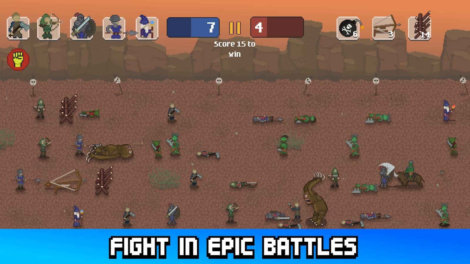 Savaş Lordları Fethi: Düşman hatları - benzersiz ve heyecan verici bir piksel askeri savaş deneyimi! Askerlerinizi çeşitli hatlara yerleştirmeye ve düşman ordularına karşı stratejik olarak karşı koymaya hazırlanın epik çatışmalarda. Ordunuzu geliştirin ve düşman şehirlerini fethederek geride hiçbir düşman bırakmayan güçlü bir lejyon oluşturun. Cesur savaşçılarınız, zafere ulaşmaları için taktiksel dehanıza güveniyor.