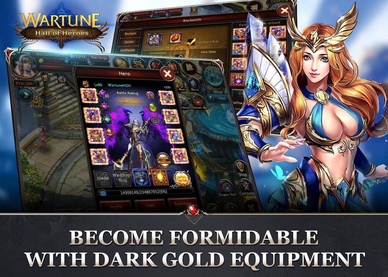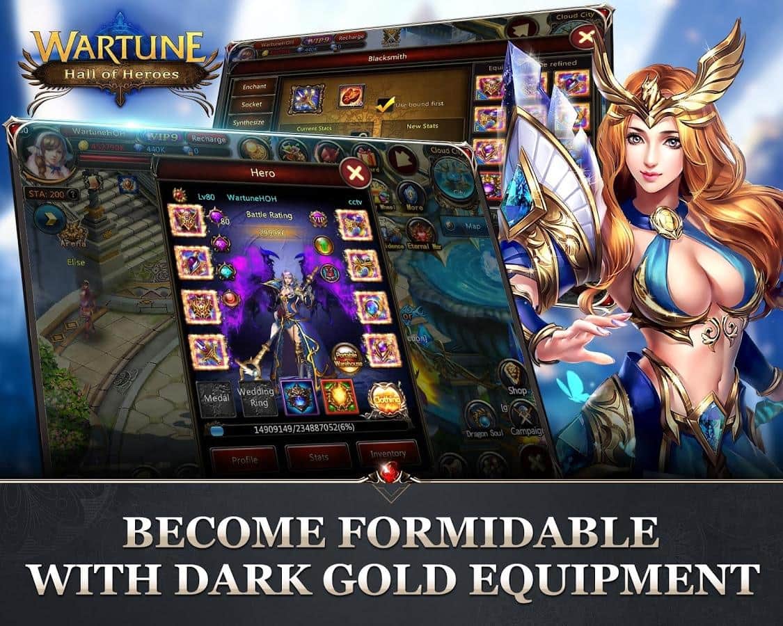 Wartune: Kahramanlar Salonu - Android için çok oyunculu bir RPG'dir, burada kahramanlar salonunda kaderinizi test edeceksiniz. En iyi savaşçıları toplayın, onlardan loncalar oluşturun ve düşmanlarla savaşın. Kiminle savaşacağınızı seçmek size kalmış, cesur bir şövalye veya kötü canavarlara karşı gücünü esirgemeyen güçlü bir büyücü olabilirsiniz. Yeni silahlar satın alın, güçlü zırhlar edinin ve dünyada daha fazla güç için en nadir loot damlalarını toplayın.