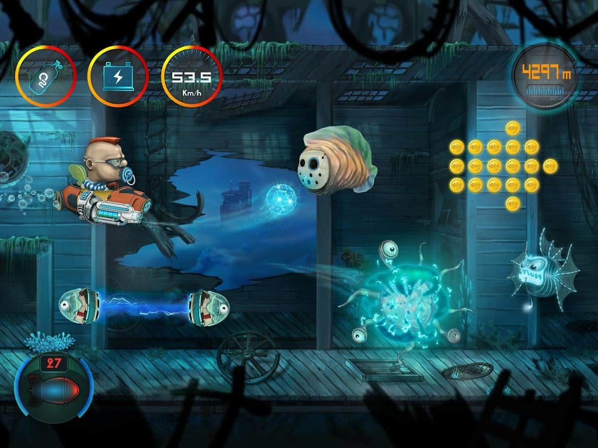 Su Gezegeni - Eğlenceli bir su altı koşucusu, burada sadece düşmanlardan kaçmakla kalmayacak, aynı zamanda oksijen seviyenizi, hızınızı ve ölümünüze neden olabilecek birçok şeyi de takip etmeniz gerekecek. Ayrıca oyunun ilerleyen bölümlerinde denizaltınızı geliştirecek, oksijen ekleyecek veya motoru değiştireceksiniz. Ayrıca düşmanları yok etmek için birkaç roketiniz olacak ve seviyenin çeşitli yerlerinde dağılmış farklı bonuslar da var.