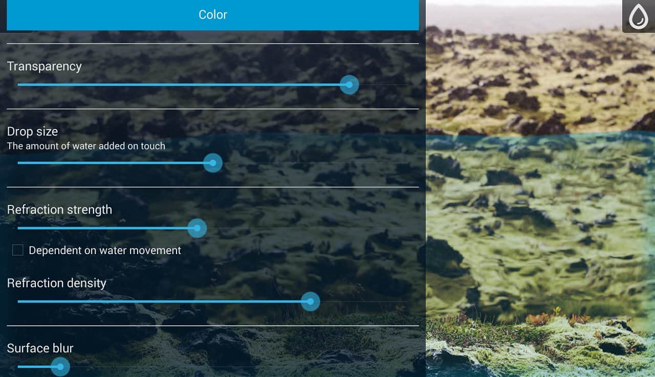 Waterfloo: Sıvı Simülasyonu – Android için eşsiz canlı duvar kağıtları, burada sıvı fiziğini gözlemleyeceksiniz. Bu duvar kağıtlarını cihazınıza kurduğunuzda, su ile yavaş yavaş dolacak bir görüntü elde edeceksiniz, içine renkli boyalar ekleyebilirsiniz. Cihazı eğdiğinizde, ekranınızdaki su da akacaktır. Gerçekçi fiziğin tadını çıkarın ve suda boyaları karıştırarak, nasıl yayıldıklarını izleyin. Duvar kağıtlarınıza kendi resimlerinizi ekleyin ve ekran görüntüsü alarak arkadaşlarınıza gösterin. Telefonunuzu süsleyecek harika canlı duvar kağıtları.