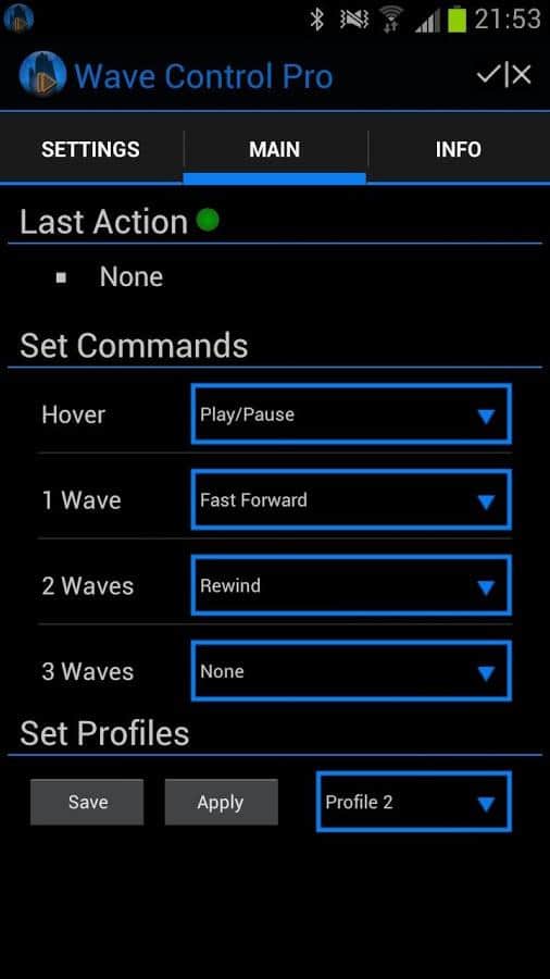 Dalga Kontrol Pro - Akıllı telefonunuzu ona dokunmadan yönetmenizi sağlayan oldukça ilginç bir uygulama! Bu uygulamanın özü, 'dalga' ayarlayabilmeniz ve elinizi akıllı telefonunuzun kamerasının önünden geçirdiğinizde bu dalganın tetiklenmesidir. İhtiyaçlarınıza bağlı olarak, buna herhangi bir fonksiyon atayabilirsiniz. Örneğin, bir dalga için ses oynatıcıyı başlatmayı, iki dalga için müziği başlatmayı ve duraklatmayı, üç dalga için ise şarkıları ileri almayı ayarlayabiliriz. İşte karşınızda gerçek bir temassız ses oynatıcı. Tüm fonksiyonlar sadece hayal gücünüze bağlı.