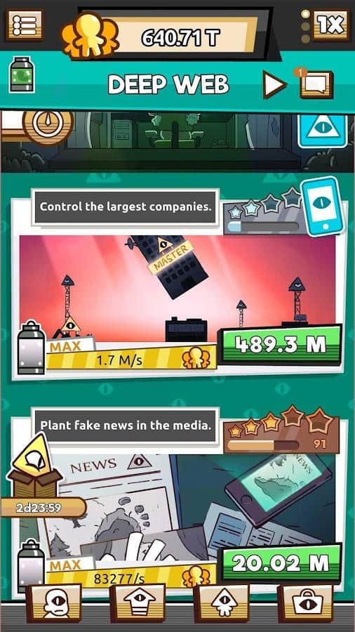 We Are Illuminati - Komplo Simülatörü Tıklayıcı - dünyayı ele geçirmeyi hayal eden uluslararası bir organizasyonun üyesi rolünde oynayacağınız oldukça özgün bir arcade tıklayıcıdır. Bu süreçte, insanlığın zihinlerine müzik videoları, makaleler, gıdada ve suda kimyasal maddeler gibi küresel araçlarla etki etmeniz gerekecek. Ayrıca, ünlülerin planlarınıza katılımını kullanma fırsatına da sahip olacaksınız. Projenin oyun mekaniği klasik bir tıklayıcı prensibine dayanıyor, ancak ekonomik strateji unsurları da mevcut.