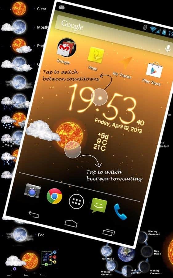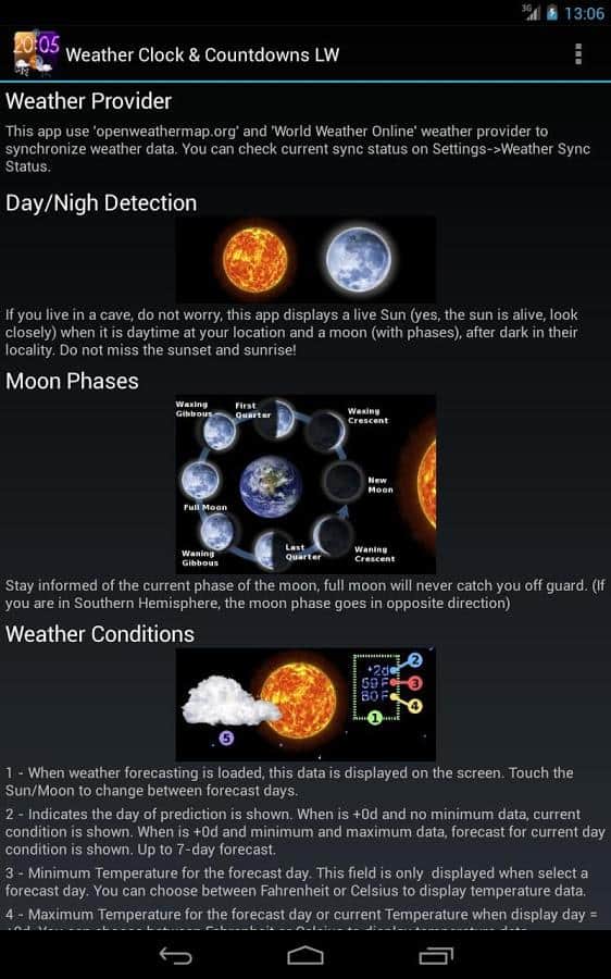 Hava Canlı Duvar Kağıdı – Aqreadd Studios geliştiricisinden Android cihazlar için harika canlı duvar kağıtları, daha çok birçok farklı özellik ile birlikte animasyonlu bir hava durumu widget'ı sunmaktadır. Bu özellikler arasında: tatil tarihine (özel bir olay/iş) geri sayım; ayın evrelerini izleme, güneşin doğuşu ve batışı; mevcut hava durumu ile birlikte 4 günlük hava tahmini vb.