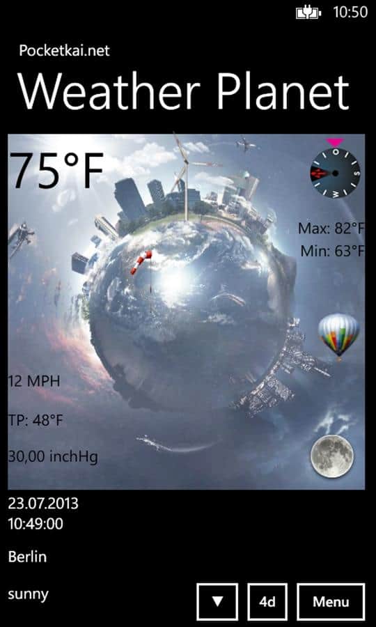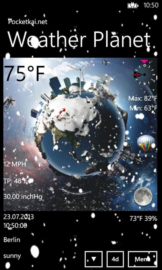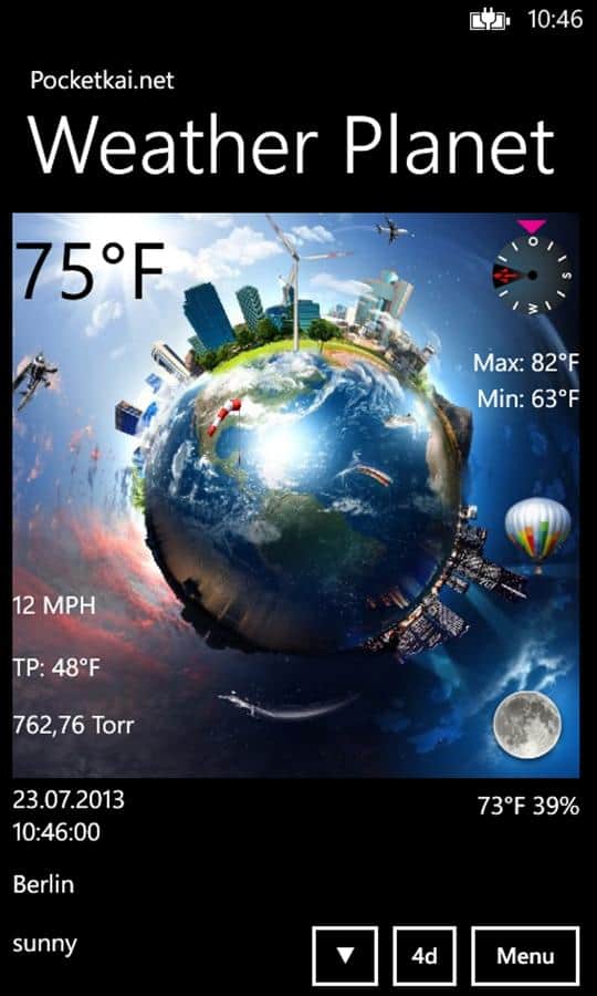 Hava Gezegeni - telefonunuzu Windows Phone ile gerçek bir hava durumu istasyonu gibi kullanın. Sıcaklık, nem, rüzgar hızı, rüzgar yönü ve barometre gibi değerleri gösterir, bunları başka yerde bulmanız zor. Bu tasarım sayesinde hava durumunu gözlemlemek artık çok daha ilginç ve eğlenceli hale geldi.