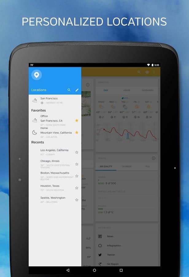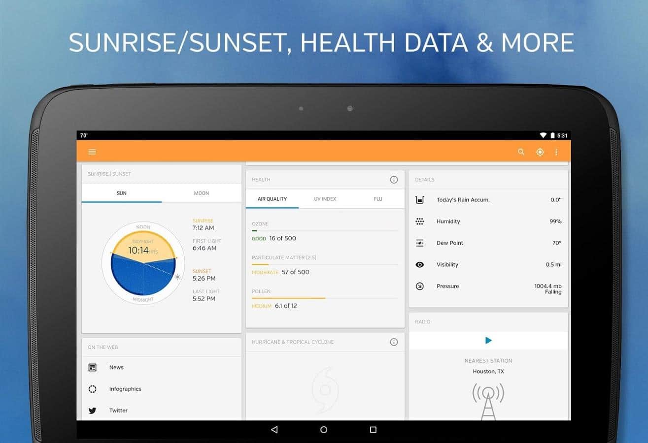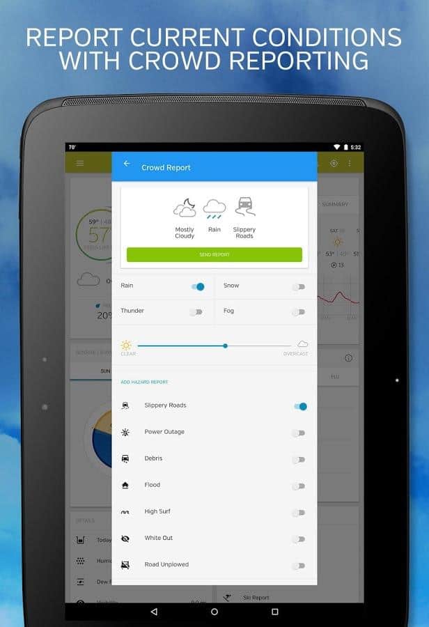 Hava Yeraltı - Bu uygulama, 180.000'den fazla hava istasyonundan bilgi toplamıştır. Bu sayede her zaman hava tahminini öğrenebilirsiniz; hatta kasırganın yönünü bile. Her yerde güzel hava olmayabilir, ama bu uygulama ile ne giymeniz gerektiğini kesinlikle bileceksiniz ve belki de çalışmak yerine evde kalmak daha iyi olabilir. Hava tahmininin belirlenmesine, dünyanın farklı köşelerinde yaşayan kullanıcılar da katılmakta ve başlarının üzerindeki havayı gerçekten gören insanlar sayesinde doğruluk sadece artmaktadır. Siz de onlardan biri olun.