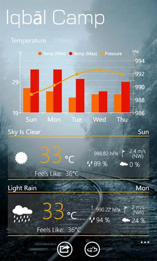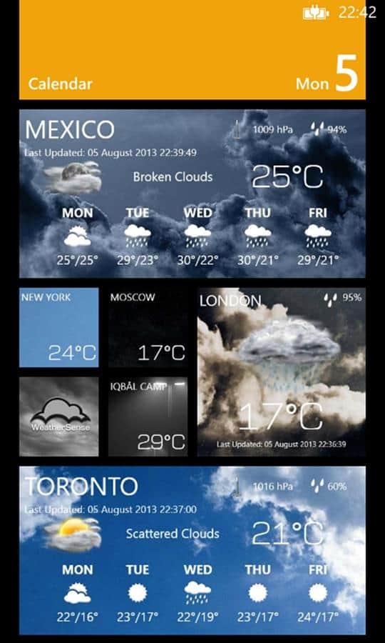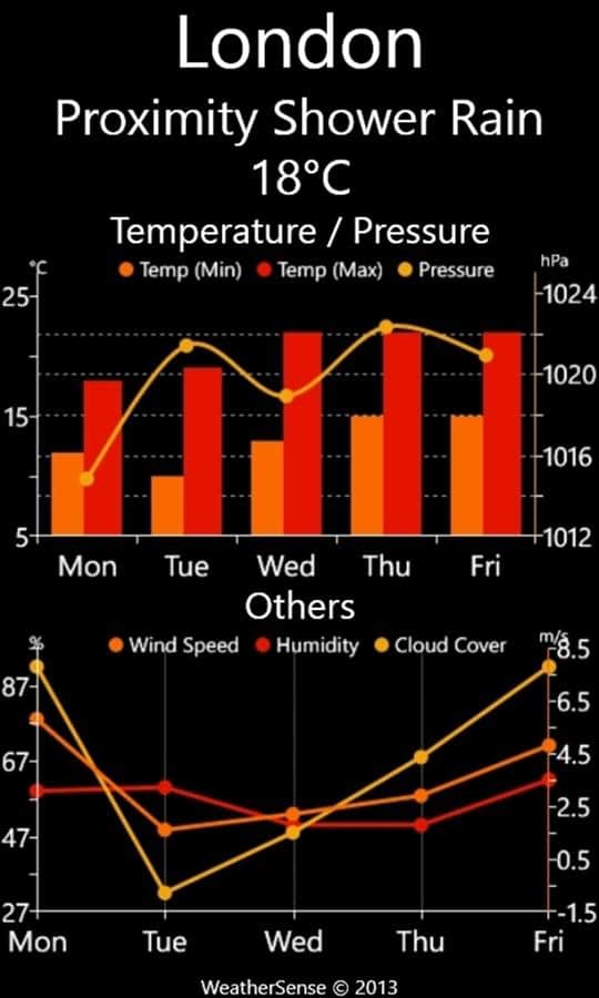 WeatherSense - Windows Phone için bir uygulama, bu sayede detaylı hava tahminini görebilirsiniz. Dünya genelinde bulunan 40.000'den fazla meteoroloji istasyonundan alınan veriler sayesinde, her zaman en yakın günler için doğru hava tahminine sahip olacaksınız.
