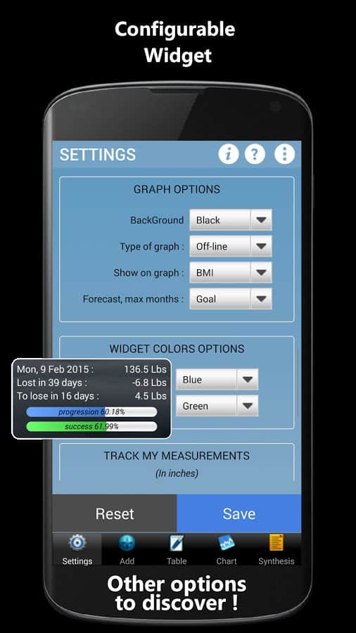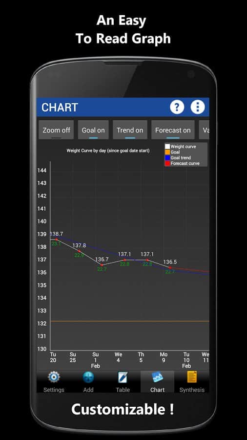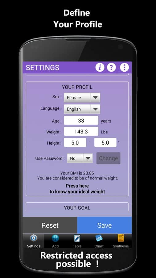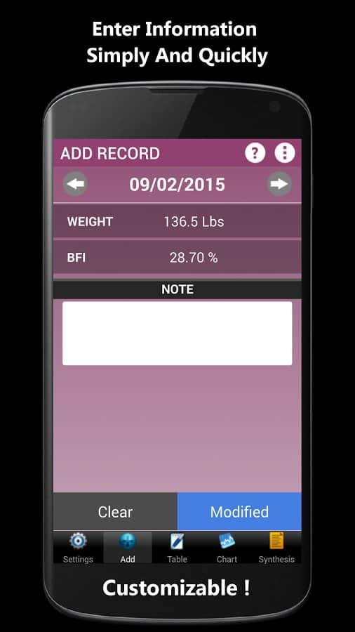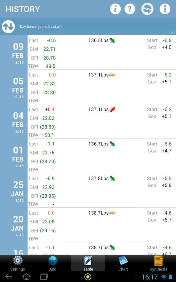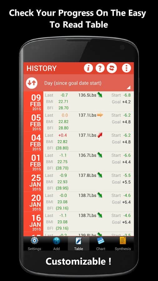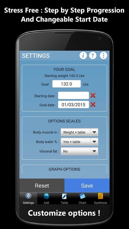 Weigh-In De Luxe – Ağırlık – formda kalmayı ve vücudundaki tüm değişiklikleri kontrol etmeyi sevenler için harika bir android programıdır. Weigh-In De Luxe'ta hedefinizi, mevcut kilonuzu belirtin ve BMI ve BFI endeksleri ile kilonuzdaki değişimleri takip edin! Program, kullanışlı bir arayüze sahiptir, arka plan rengini ayarlama imkanı ve daha fazlasını sunar.