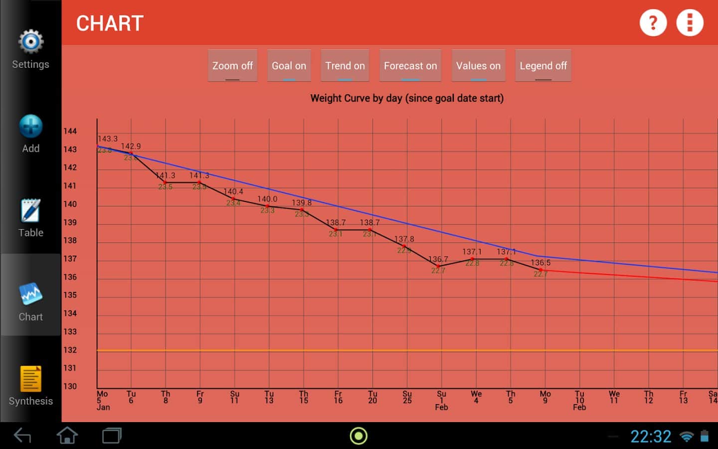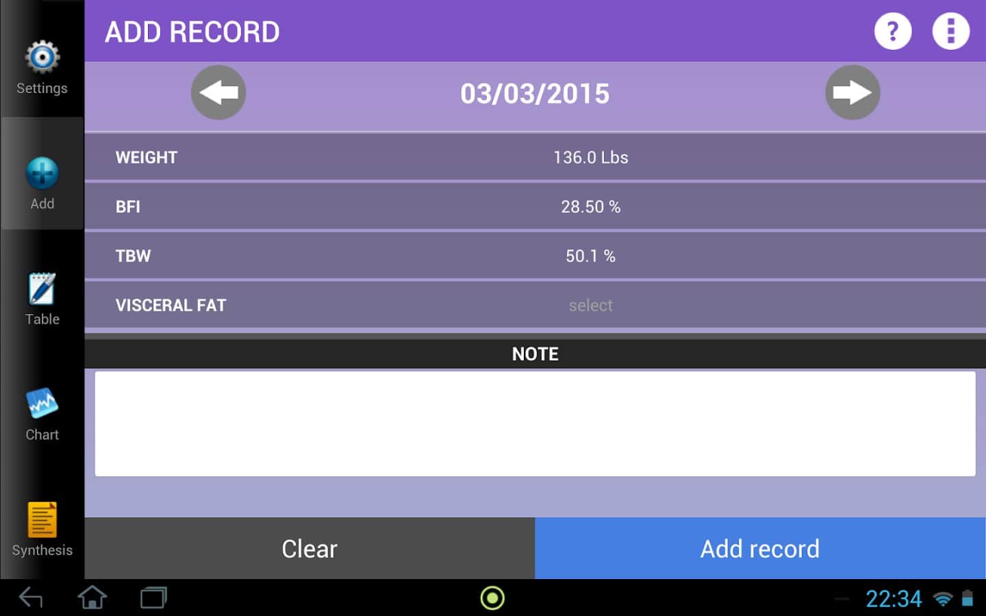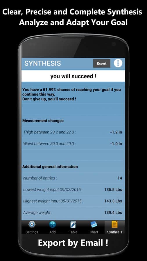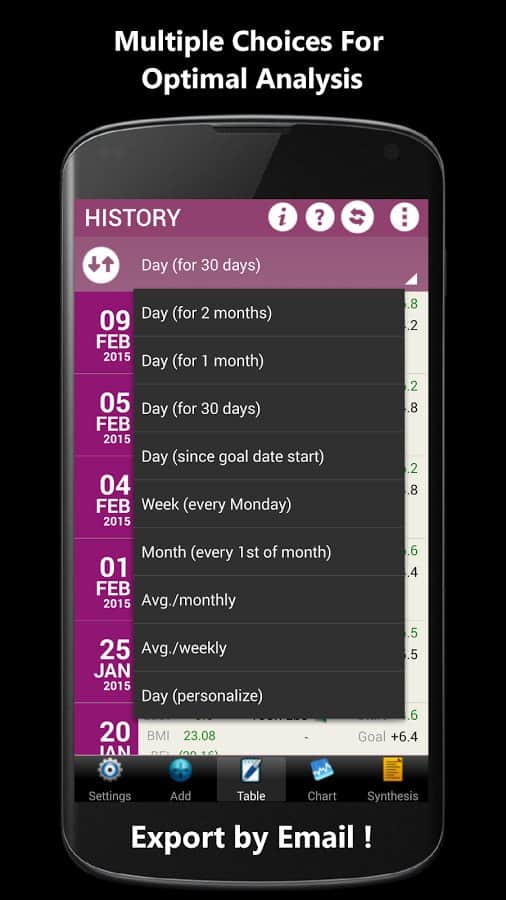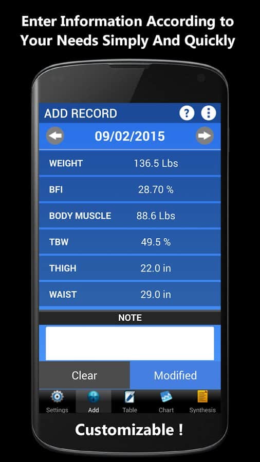 Weigh-In De Luxe – Ağırlık – formda kalmayı ve vücudundaki tüm değişiklikleri kontrol etmeyi sevenler için harika bir android programıdır. Weigh-In De Luxe'ta hedefinizi, mevcut kilonuzu belirtin ve BMI ve BFI endeksleri ile kilonuzdaki değişimleri takip edin! Program, kullanışlı bir arayüze sahiptir, arka plan rengini ayarlama imkanı ve daha fazlasını sunar.