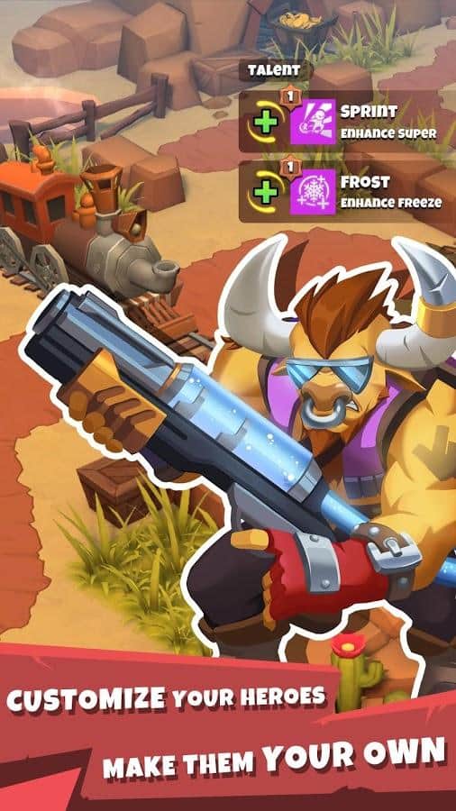 Favori kahramanını seç ve arenaya git, burada 3 dakikalık bir savaşta tüm düşmanlarını yok etmelisin! Düşman takımıyla çeşitli haritalarda kendi kurallarınla savaşı ve Batı'nın nasıl fethedildiğini herkese göster. Bıçakları keskinleştirme ve tabancaları doldurma zamanı!