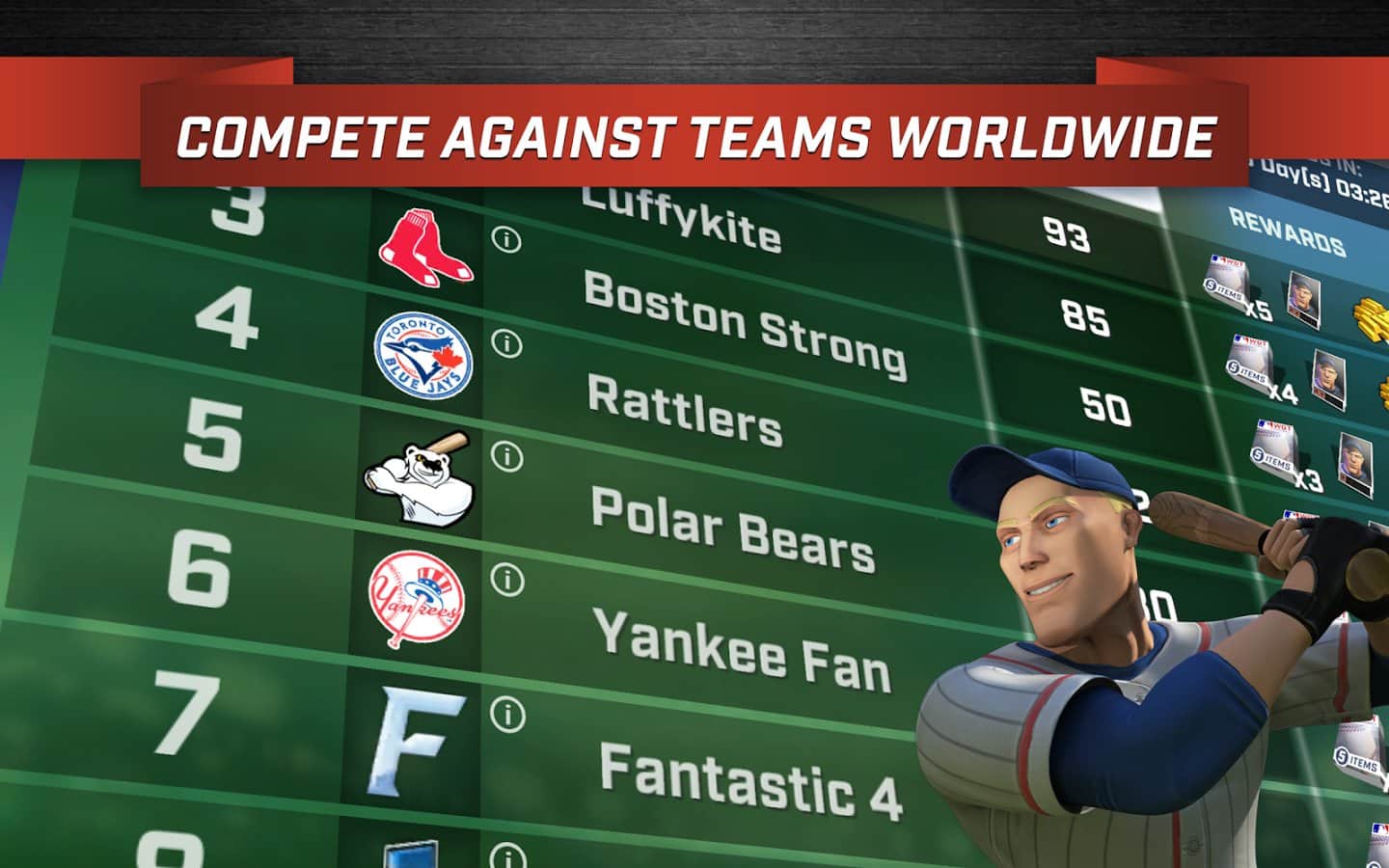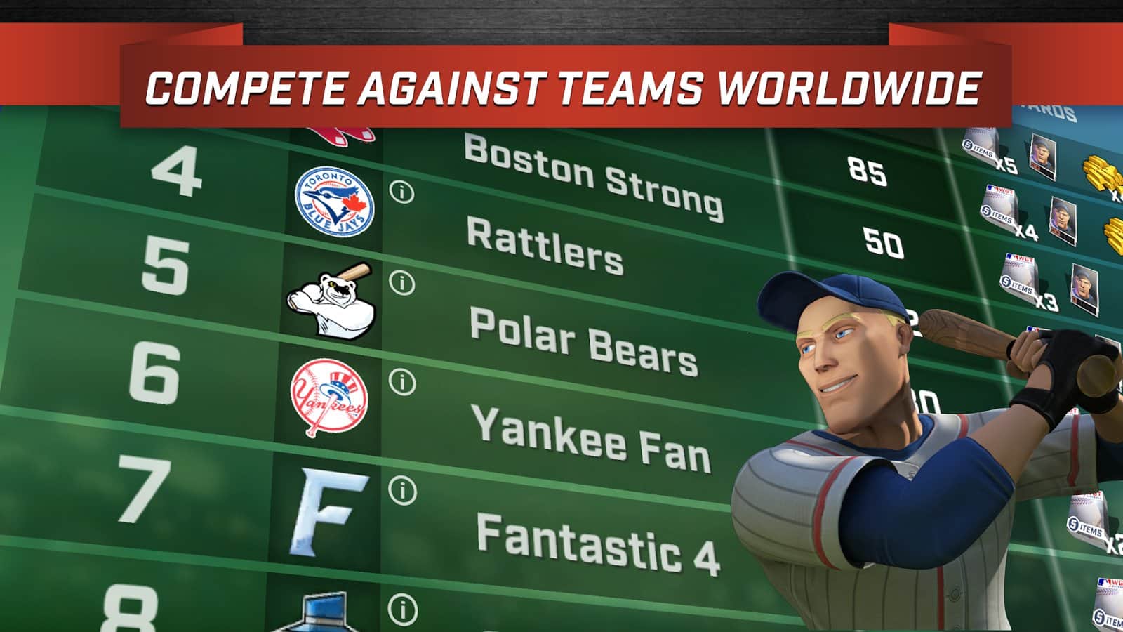 WGT Beyzbol MLB – bu Android oyununda profesyonel beyzbol oynayın. Beğendiğiniz beyzbol takımını seçin ve onu büyük şampiyonada zafere taşıyın. Güçlü takımlara karşı mücadele edin ve hiçbir atışı kaçırmadan gol atın. Takımınızı eğitin ve en iyi sonuçları elde ederek tüm sezonlarda kazanma şansınızı artırın. Her oyuncunun benzersiz yeteneklerini kullanın ve olayların seyrini değiştirin. Deneyimli rakipleri yenin ve liderlik tablosunda en üst sıraya yükselin. Takımınıza yeni oyuncular ekleyin ve hayalinizdeki takımı oluşturun. Oyunun başlıca özellikleri arasında 30 gerçek takım, ünlü beyzbolcular ve dinamik maçlar bulunmaktadır.