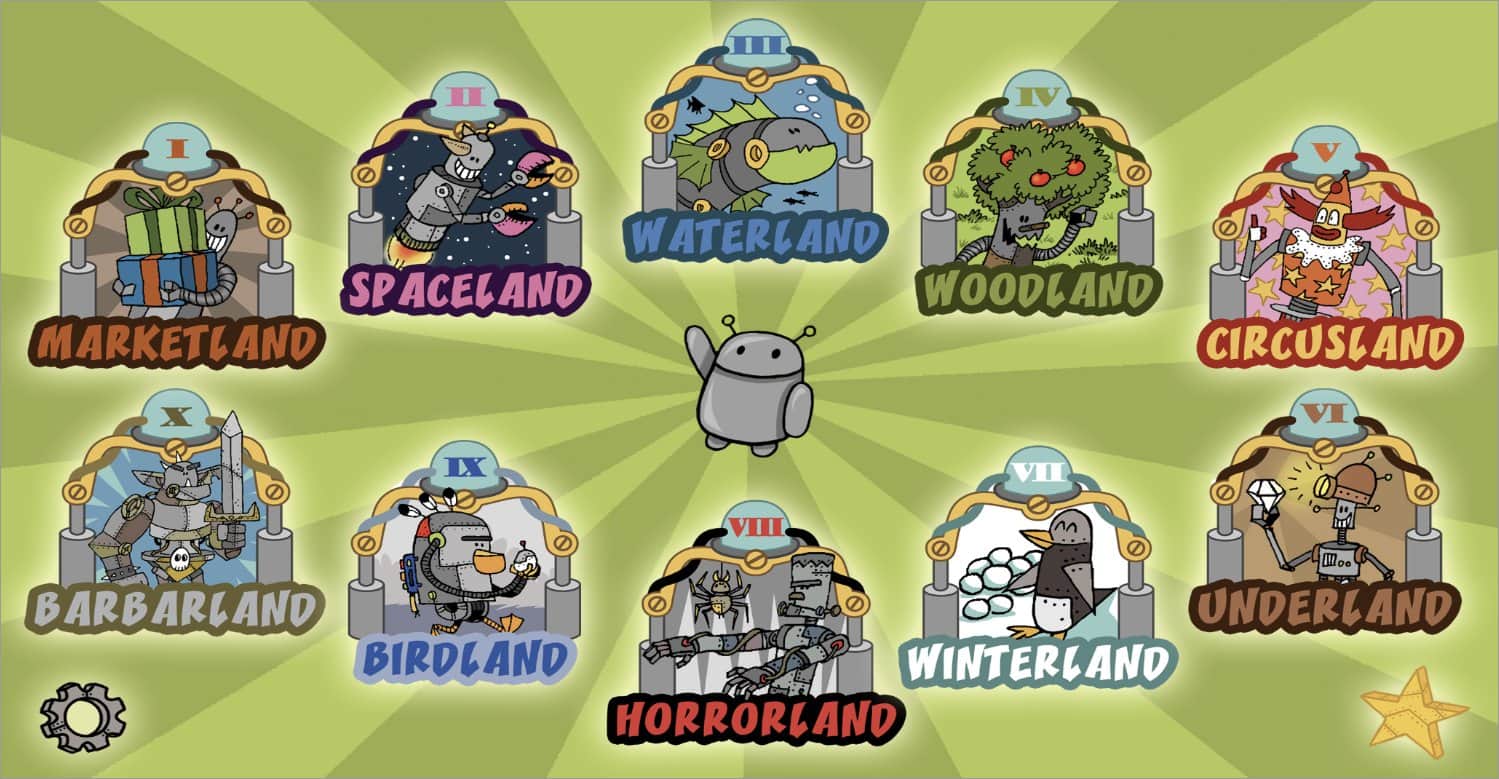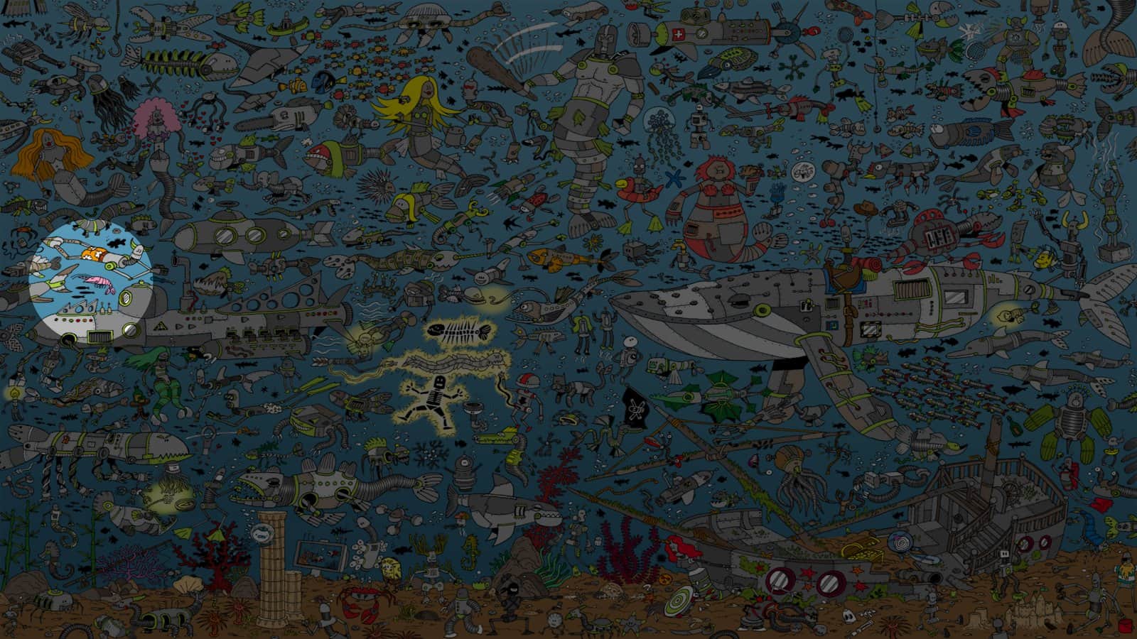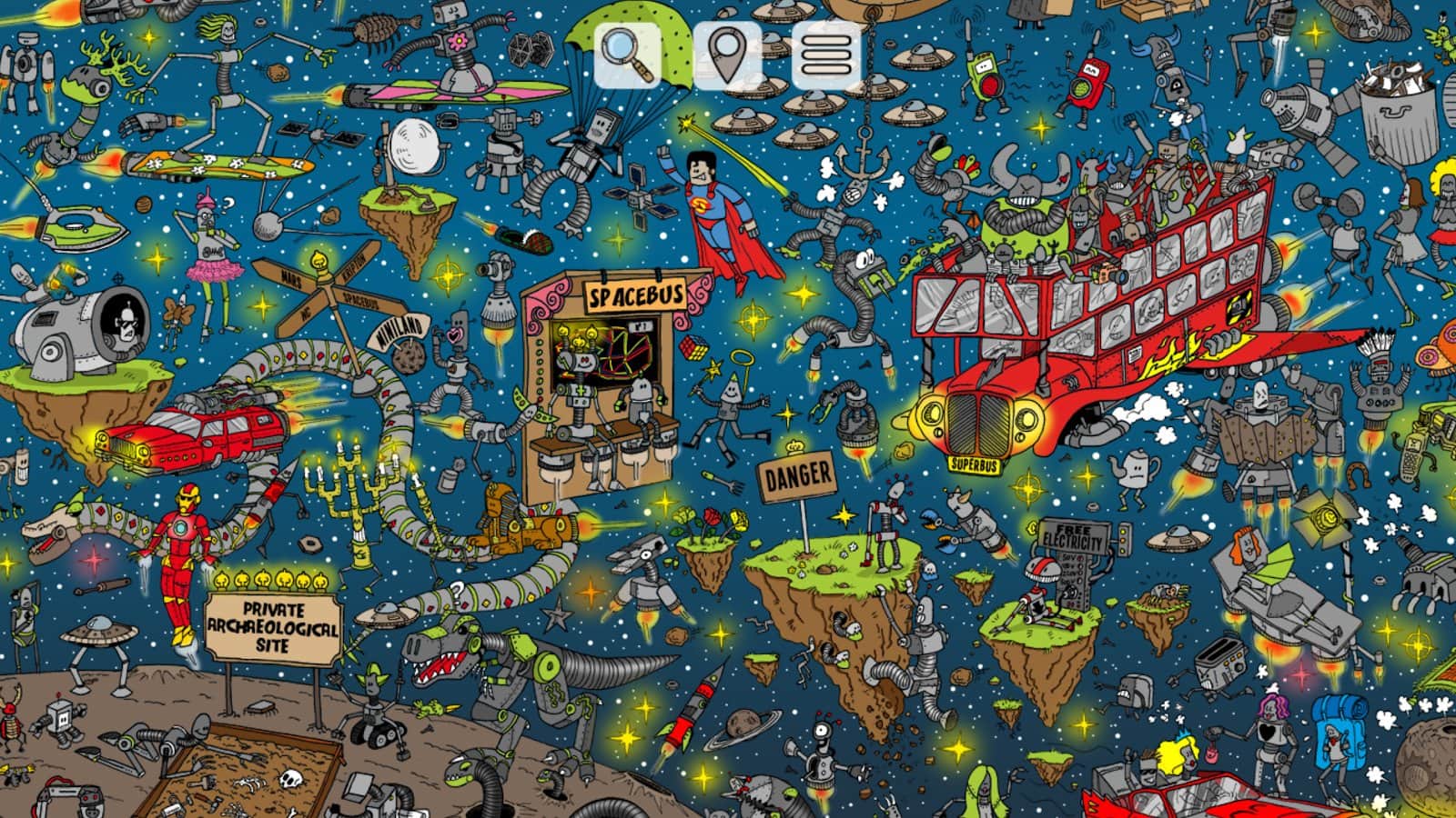 Droid nerede? - ünlü bir çizgi diziye atıfta bulunan mantık oyunu, adını unuttuğum =) Her bölümün sonunda, farklı nesneler ve varlıkların büyük bir karmaşası içinde bir insanı bulmak gerekiyordu. Aslında bu oyunda da aynı şeyi yapacağız. Her türlü uzay çöpü, eski androidler, robot canavarlari, metal yüzgeçli balıklar, uzay otobüsleri, galaksalar arası hotdoglar ve diğer çeşitli nesnelerin büyük bir yığınını açan bir dünya açılıyor. Bu çeşitliliğin arasında robotumuz kayboldu ve onu mümkün olan en kısa sürede bulmalısınız. Korkuyor ve yalnız. Ona yardım et!