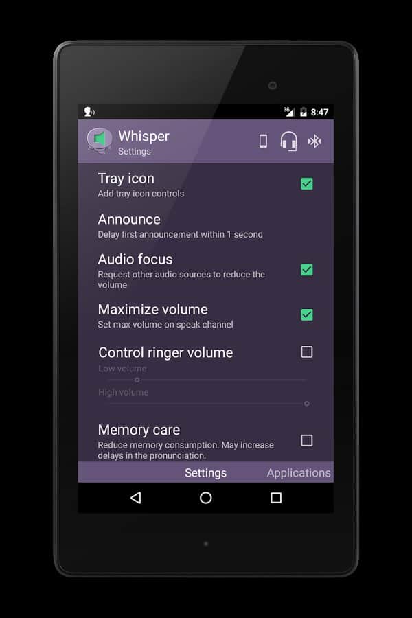 Fısıldamak – basit ve anlaşılır bir arayüze sahip, Android için iyi ve kullanışlı bir programdır. Fısıldamak, arayanın adını hoş bir sesle söyler. İlk açılışta, kişileri analiz eder ve SD karta gerekli olan tüm sesli sinyalleri indirir. Ek seslerin eklenebilme imkanı, cihazınızın yazılım ve donanım özelliklerine doğrudan bağlı olduğunu belirtmek gerekir.