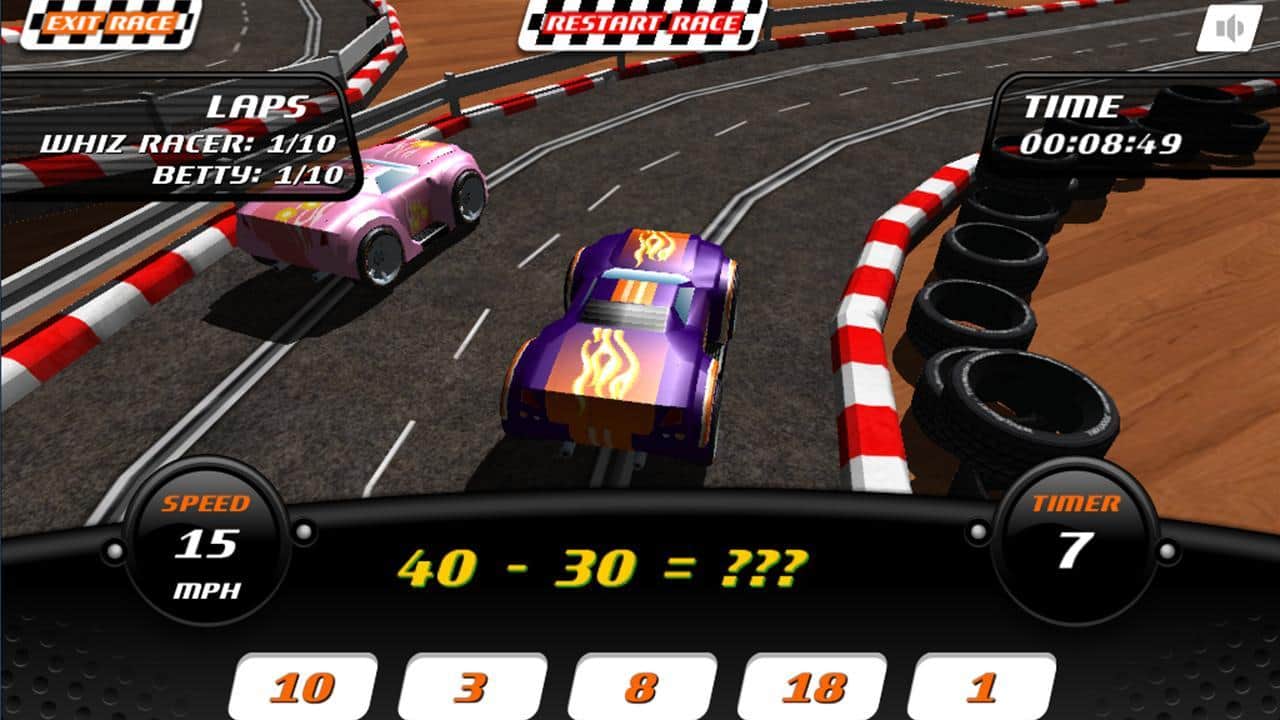 Whiz Racer - Android için bir oyun, burada matematik problemlerini çözmeniz gerekiyor, doğru cevap size hız katacak. Tüm rakiplerinizi geçmek ve en zeki olduğunuzu kanıtlamak için hesaplamalar yapmanız, çarpmanız, bölmeniz ve matematikteki tüm bilginizi göstermeniz gerekecek.