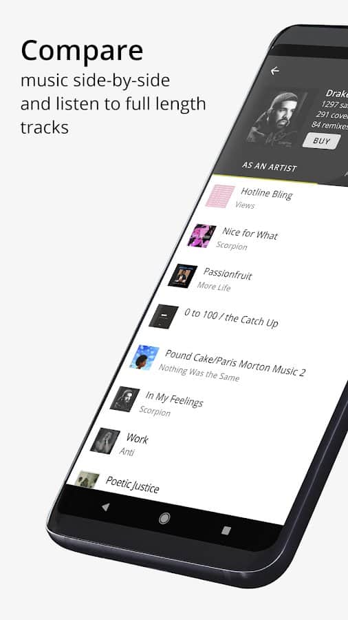 - Parça hakkında detaylı bilgi ve sosyal medyada paylaşma imkanı.