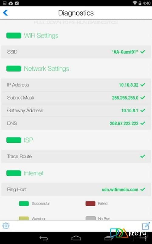 WiFiMedic, mobil cihazda WiFi bağlantısının tüm hayati işlevlerini analiz eden bir uygulamadır. Uygulama, kablosuz ağa bağlanmayla ilgili tüm rxtdst anlarını teşhis eder. Program, bağlantı ile ilgili sorunları bulabilir ve bunları giderir. İnternet hızı testi, bağlantınızın ne kadar hızlı olduğunu belirler. Temel özelliklerin yanı sıra, uygulama size aşağıdaki bilgileri de verebilir: