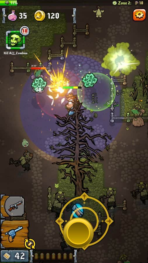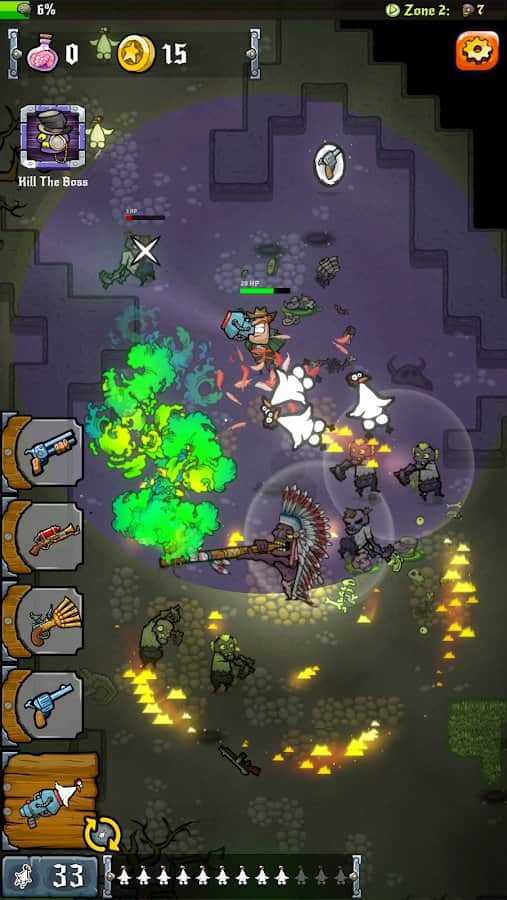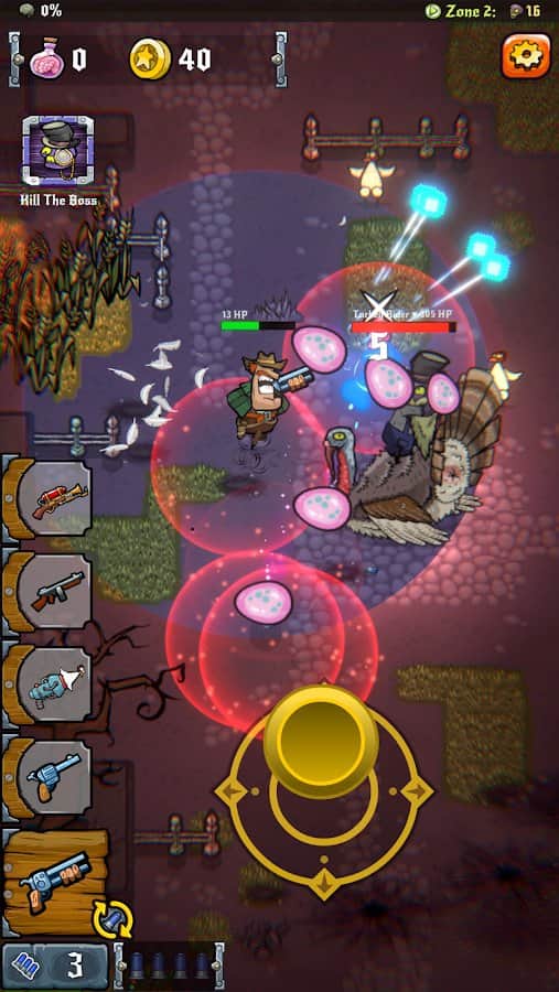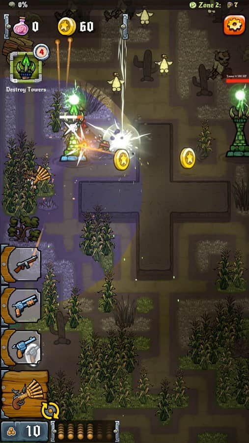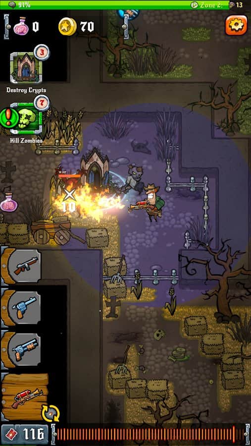 Vahşi Zombi Batısı - Android'de dinamik bir oyun, zombi kıyameti dünyasına dalacaksınız. Ekrana dokunarak maceranıza başlayın ve kahramanınızı savaşa gönderin. Silahınız sürekli olarak nişan alacak ve kararlı bir şekilde koruyacak, böylece güvenli bir mesafede kalabileceksiniz. Bu ölüler arasındaki ateşli bale, size sıradışı silahlar getirecek - şatafatlı bir tavuk tabancasından yıkıcı bir alev makinesine, makineli tüfekten pompalı tüfeğe kadar. Yolda karşınıza çıkan zombileri yok edin, yeni seviyelere yavaş yavaş yükselin ve bu dünyada muhteşem iyileştirmeler sizi saracak. Zombiler yok edilmelidir ve siz cömert ödüller ve onurlandırmaları hak ediyorsunuz. Bu yüzden korkuyu unutun ve zombi ıssızlığından geçin. Yenilmezliğinizi kanıtlayın ve kıyametin gerçek olduğu bu dünyada bir uzman olun.