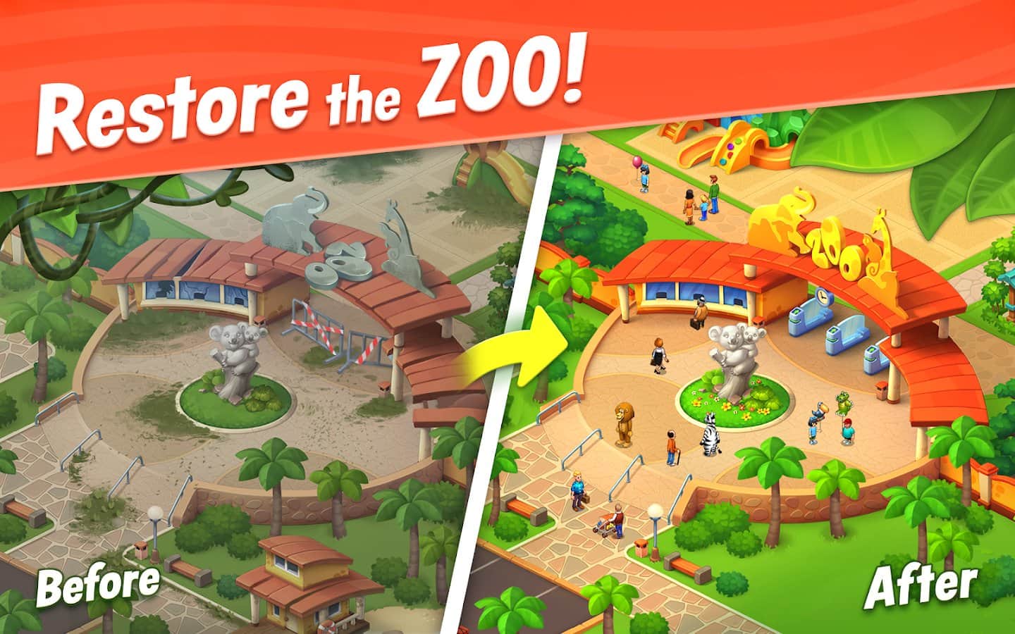 Yaban Manzaraları - Android için eğlenceli bir oyun, burada nesneleri sıralayacak ve hayvanat bahçenizi geliştirmek için görevleri yerine getireceksiniz. Bu oyunda hayvanat bahçeniz eski şanını kaybetti ve şimdi görev sizin onu yeniden inşa etmeniz. Üç veya daha fazla nesneden oluşan sıralar yapın ve oyun seviyelerini geçerken zor mantık bulmacalarını çözün. Hayvanlar için güzel ve geniş kafesler inşa edin, dekoratif bitkiler dikin ve park alanında dükkanlar ve kafeler açın. Koleksiyonunuzu yeni hayvanlarla zenginleştirin ve bonuslar ile güçlendirmeler kazanın.