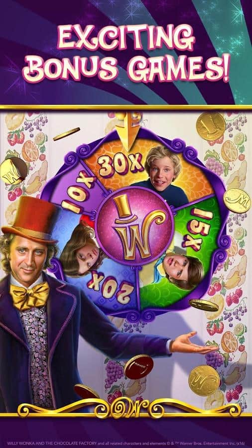 Willy Wonka Slotları Ücretsiz Casino – Android için harika bir oyun, burada casino atmosferine dalacak ve slot makinelerinin makaralarını çevireceksiniz. Bu oyunda birçok kişinin sevdiği karakter Willy Wonka ile tanışacak ve onun çikolata fabrikasını ziyaret edeceksiniz. Makaraları çevirin ve harika ödüller kazanın, ayrıca Charlie ile birlikte ünlü çikolata fabrikasında bir tura çıkma fırsatını yakalayın. Oyun seviyelerini keşfedin ve çikolata fabrikasının tarihini ve ana karakterlerle daha yakından tanışın. Ödül olarak çikolata barları kazanın ve bunları arkadaşlarınıza gönderin.