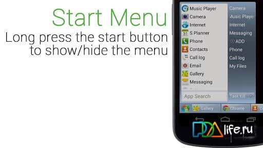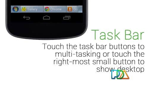FleeOn geliştiricisinden Android akıllı telefonlar için Windows 7 Görev Çubuğu, Windows 7 gibi bir görev çubuğuna sahip. Uygulama paneli, Başlat düğmesine uzun basma ile tepki verir ve ardından yüklenen uygulamaları açma/gizleme olanağı sunar. Ayrıca, talep üzerine RAM'i tamamen temizlemek için bir widget ekleme olanağı da bulunmaktadır. İyi çalışmalar ve güzel bir ruh hali dilerim.