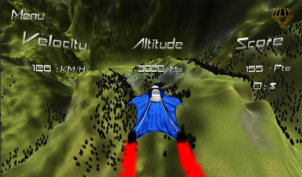 Wingsuit "Simülatörü" – yerde kanat kostümü ile süzülen bir karakteri kontrol etmeniz gereken gerçekçi fiziklere sahip bir oyun. Ağaçlar, kayalar ve size ciddi zarar verebilecek kuşlarla çarpışmalardan kaçınarak dağlık alanların üzerinde uçun. Yüksek hızda uçun ve engellerden kaçınarak karakterinizi ivmeölçer ile yönlendirin. Yumuşak bir iniş yapmak için paraşütü kullanın. Puan kazanarak farklı kostümler ve ihtiyaç duyduğunuz ekipmanları satın alın. Eşsiz engeller ve görevlerin sizi beklediği 40'tan fazla görevi açın.