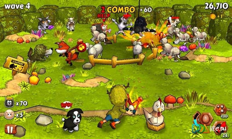 Kurt Avcısı - Koyunları Kurtar - Android için eğlenceli bir arcade oyunu, size bolca pozitiflik sunacak. Oyundaki göreviniz, seviyenin ortasında bulunan beş koyunu korumaktır. Koyunlara farklı yönlerden kurtlar yaklaşacak ve bunları küçük çoban Jan ile birlikte mancınıkla vurmanız gerekecek. Oyunda hoş bir üç boyutlu karikatür grafiği bulunmaktadır.