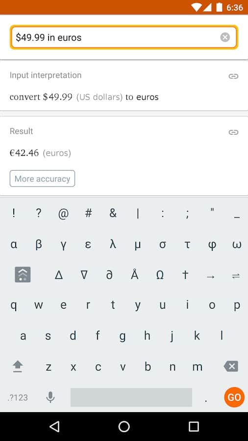 Wolfram Alpha, matematik fakültelerinde okuyanlar için harika bir Android uygulaması. Ücretsiz indirin ve akıllı telefonunuza kurun - program karmaşık matematiksel problemleri çevrimiçi modda kolayca hesaplayacaktır! Wolfram Alpha grafikler çizebilir, eğriler oluşturabilir, kimyasal denklemleri hesaplayabilir! Tek yapmanız gereken, bir matematik problemi, kimyasal denklem ya da arama çubuğuna herhangi bir başka dizi yazmaktır.