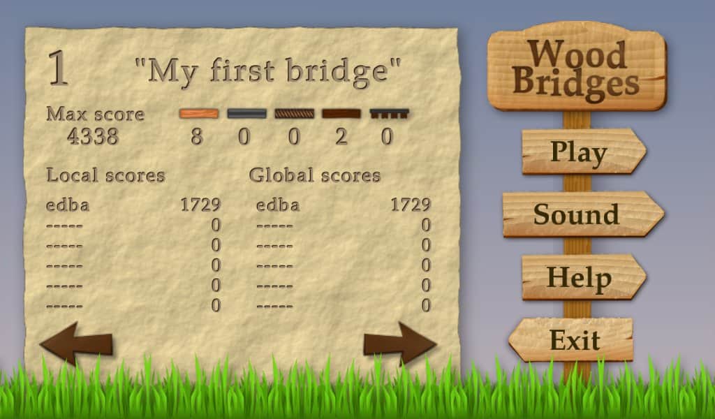 Ahşap Köprüler – Android için heyecan verici bir bulmaca oyunu, burada köprüler inşa edeceksiniz. Bu oyunda, köprüler inşa etmek ve bunları araçları geçerek dayanıklılıklarını test etmek için birçok farklı parçanız olacak. Çeşitli ahşap köprüler inşa edin ve oyun boyunca yeni parçalar ve inşaat ekipmanları açın. Köprü inşaatında mümkün olduğunca az parça kullanın ve en yüksek puanları elde edin. Hayal gücünüzü ve zekanızı kullanın ve ağır yük taşıyan araçlar için dev köprüler inşa edin. Bu oyundaki 41 seviyenin tamamını geçin ve rekor sonuçlar elde edin.