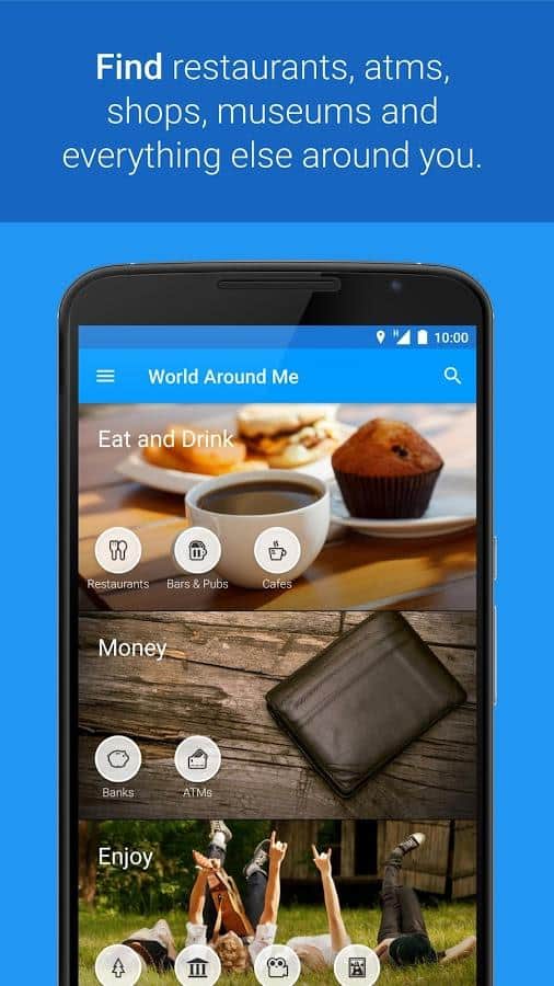 Etrafımdaki Dünya - Seyahat severler için benzersiz bir uygulama. Burada, farklı binaların sizden ne kadar uzakta olduğunu belirleyebilirsiniz. Kesinlikle her şeyi bulabilirsiniz. İhtiyacınız olan arama kriterini seçerek ve telefonu göz hizasına kaldırarak. Sadece dönebilir ve etrafa bakabilirsiniz. WAM, etrafınızdaki tüm yerlerle ilgili yararlı ve eğlenceli bilgiler sunan sorunsuz, şık bir arayüzle birlikte gelişmiş artırılmış gerçeklik teknolojisini bir araya getiriyor.