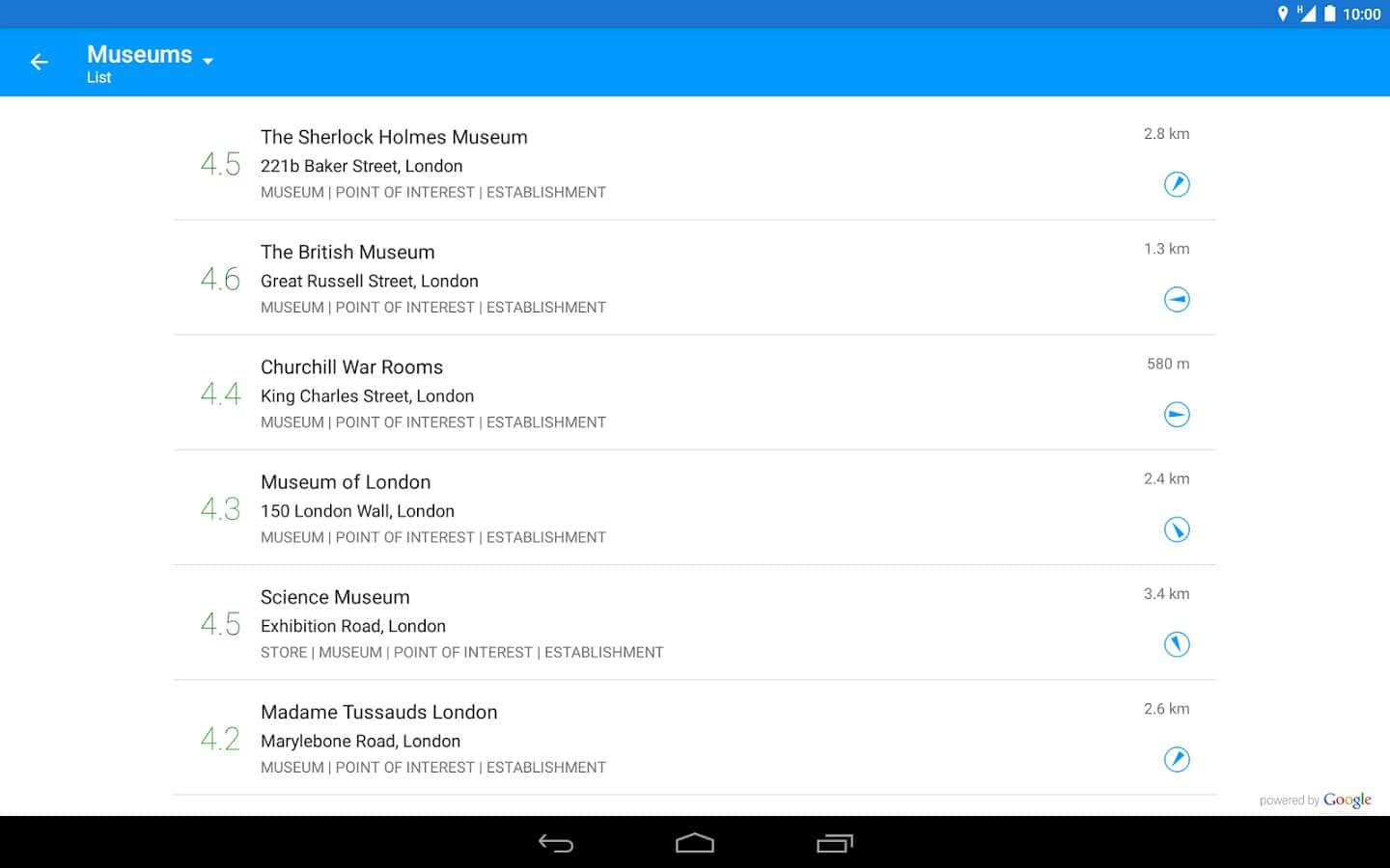Bu uygulama tarafından bulunabilecek yerler: