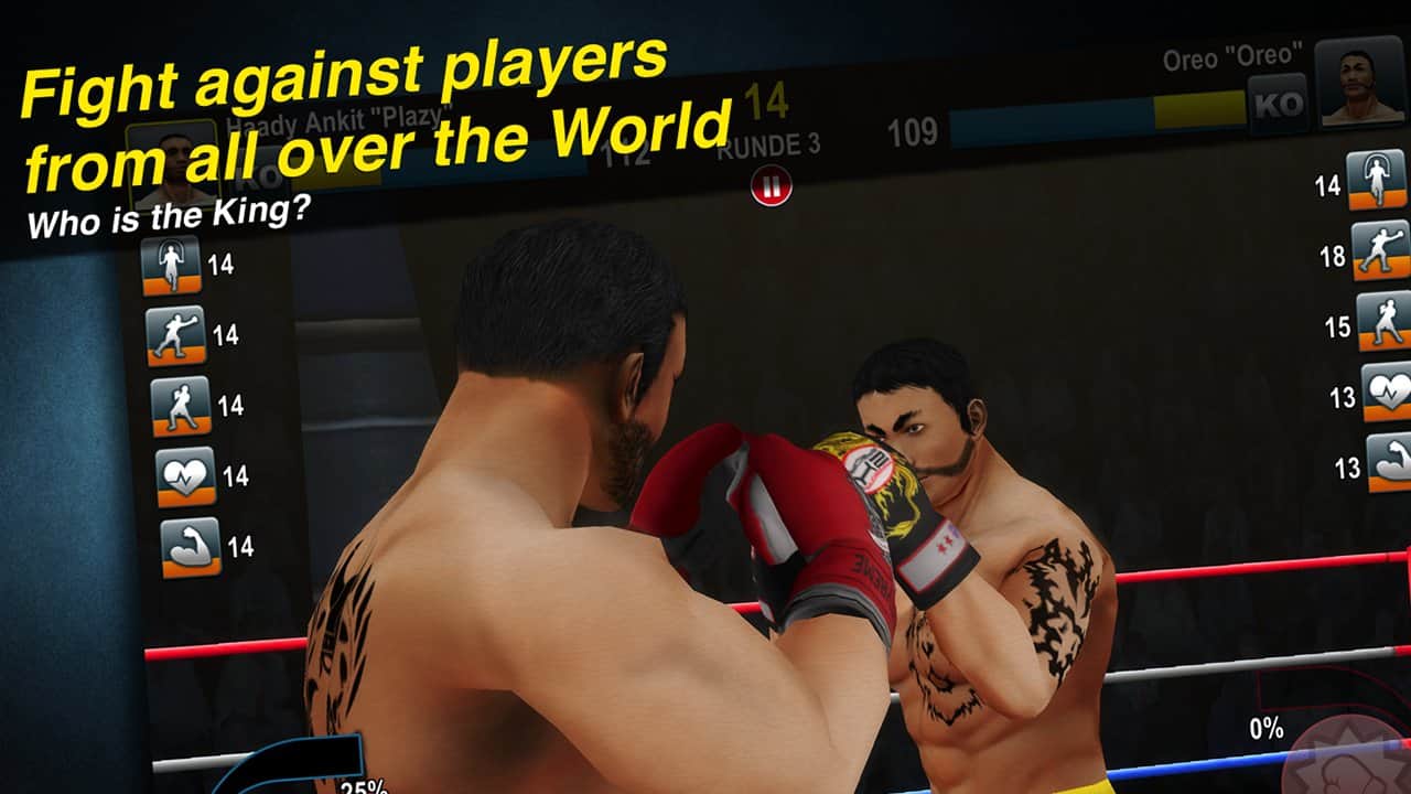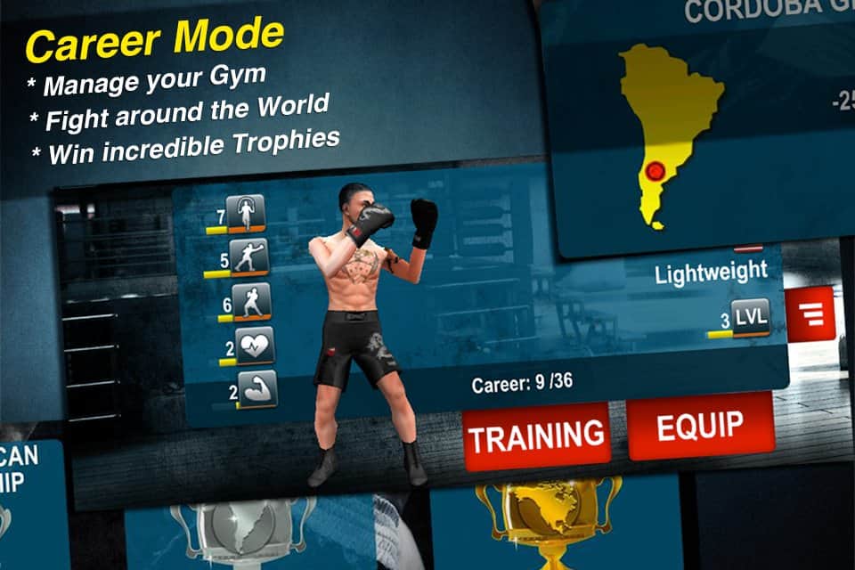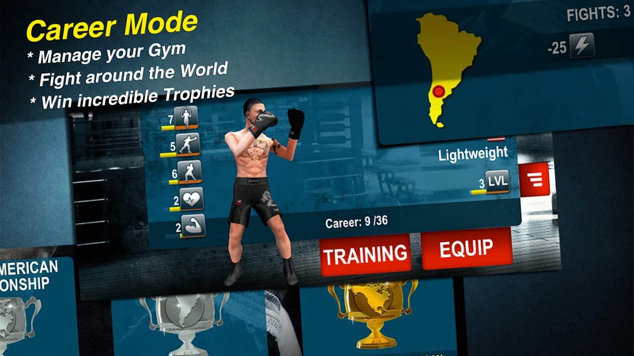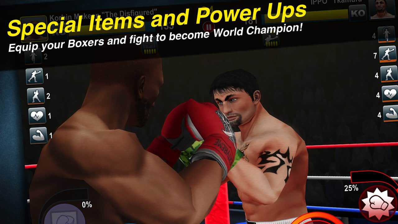 Dünya Boks Mücadelesi – Android için bir spor oyunu, burada profesyonel boksörlerin antrenörü olarak becerilerinizi gerçek bir şekilde test edeceksiniz. Bu oyunda kendi salonunuz olacak ve farklı ağırlık kategorilerindeki boksörleri eğitebileceksiniz. Boksörlerinizin özelliklerini enerji içecekleri ve barlarla geliştirin ve onları diğer boksörlerle dövüşe çıkararak her değerli zaferi kazanın. Ödüller ve kupalar kazanın ve bunları onur salonunuzda sergileyin. Oyunda boksörü otomatik kontrol etme işlevi var, bu arada antrenör rolünde kalıyorsunuz. Rakiplerinizi kendi salonlarında yenerken puanlarınızı artırın ve ayrıca boksör sayınızı artırmak için onları satın alarak veya satarak genişletin.