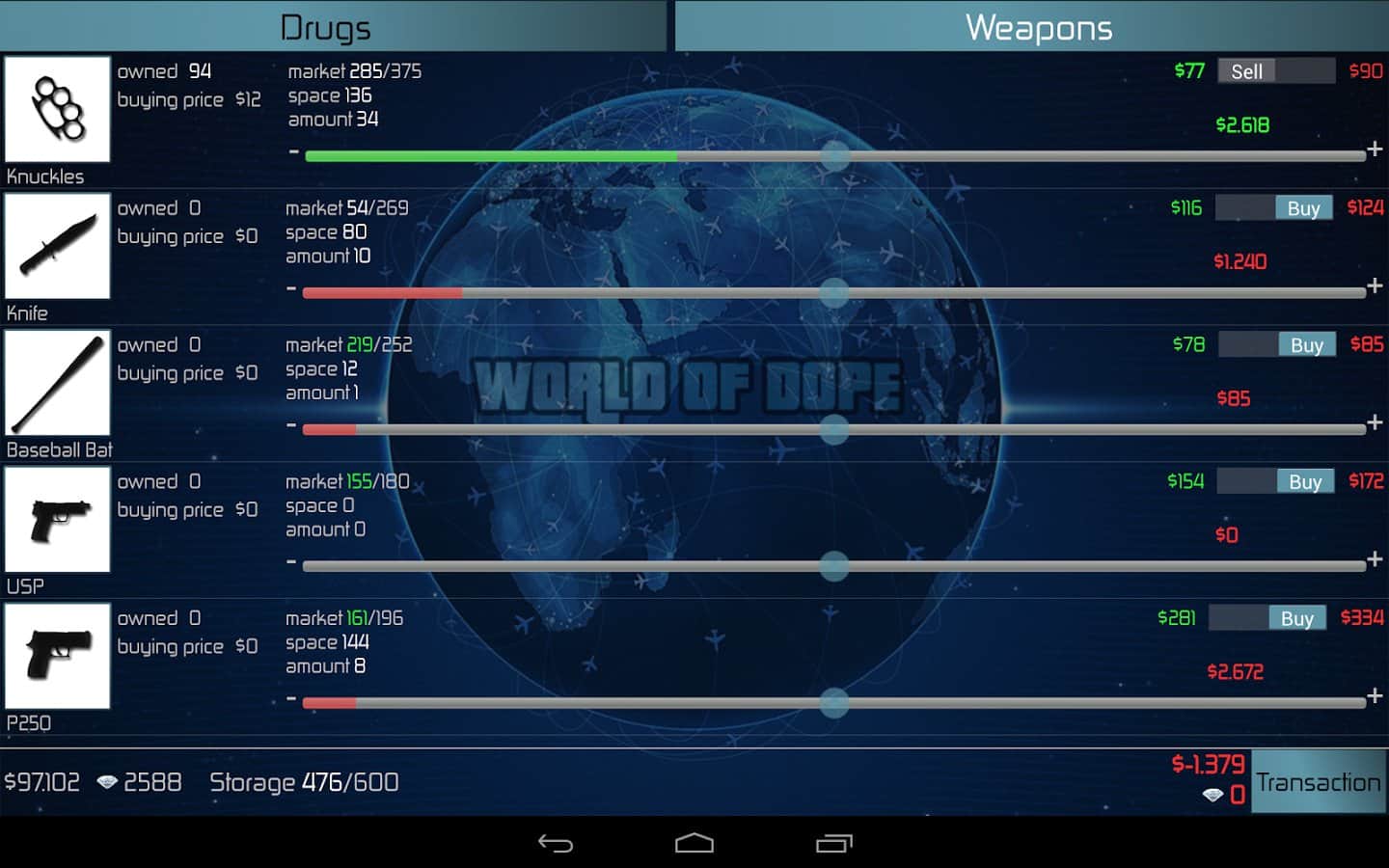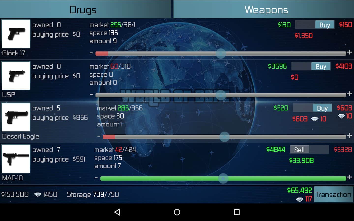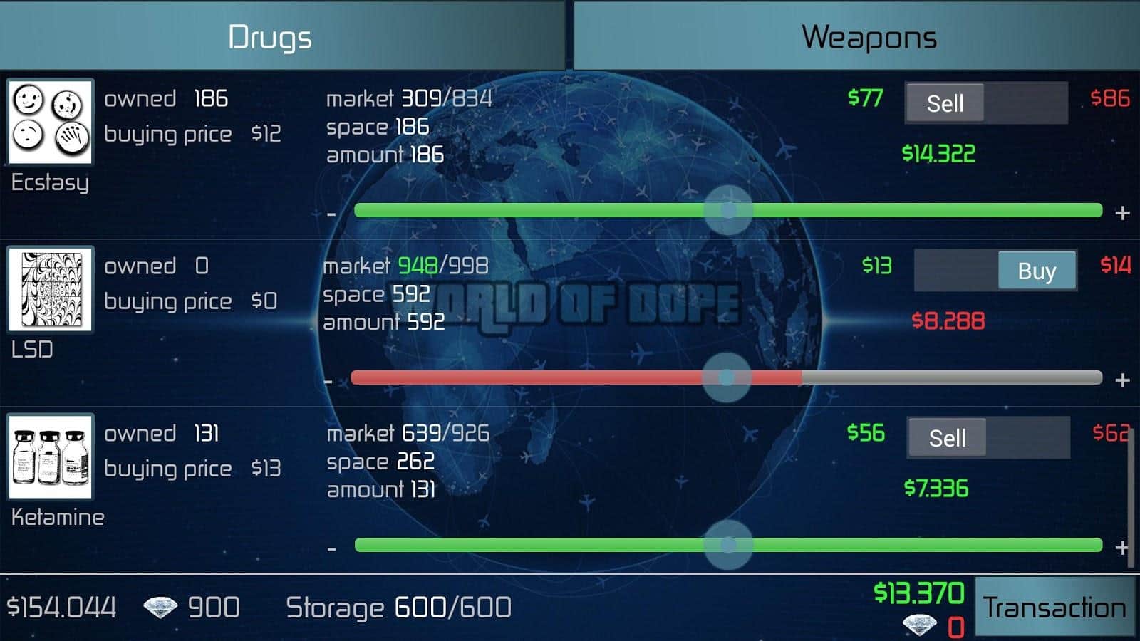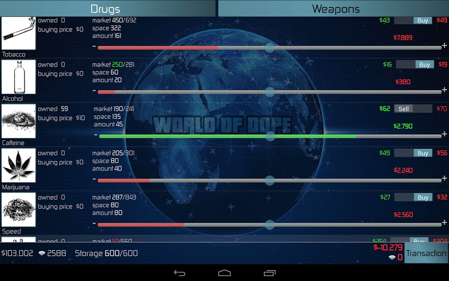 Uyuşturucu Dünyası, bu yasadışı işte yeteneklerinizi deneyebileceğiniz kapsamlı bir strateji oyunudur. Üstelik oyundaki uyuşturucu ticareti modeli oldukça gerçekçi bir şekilde sunulmuştur, yüzyüze yüzden fazla şehir, 40'tan fazla uyuşturucu türü, silahlar, uçaklar, otomobiller, rekabet ve polis - hepsi yerinde.